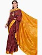 Dewberry-Purple and Peach Kanjivaram Handloom Sari with Brocaded Aanchal