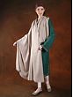 Oyster-Gray Extra-Wide Machine Spun Pashmina Shawl With Cotton Embroidered Border