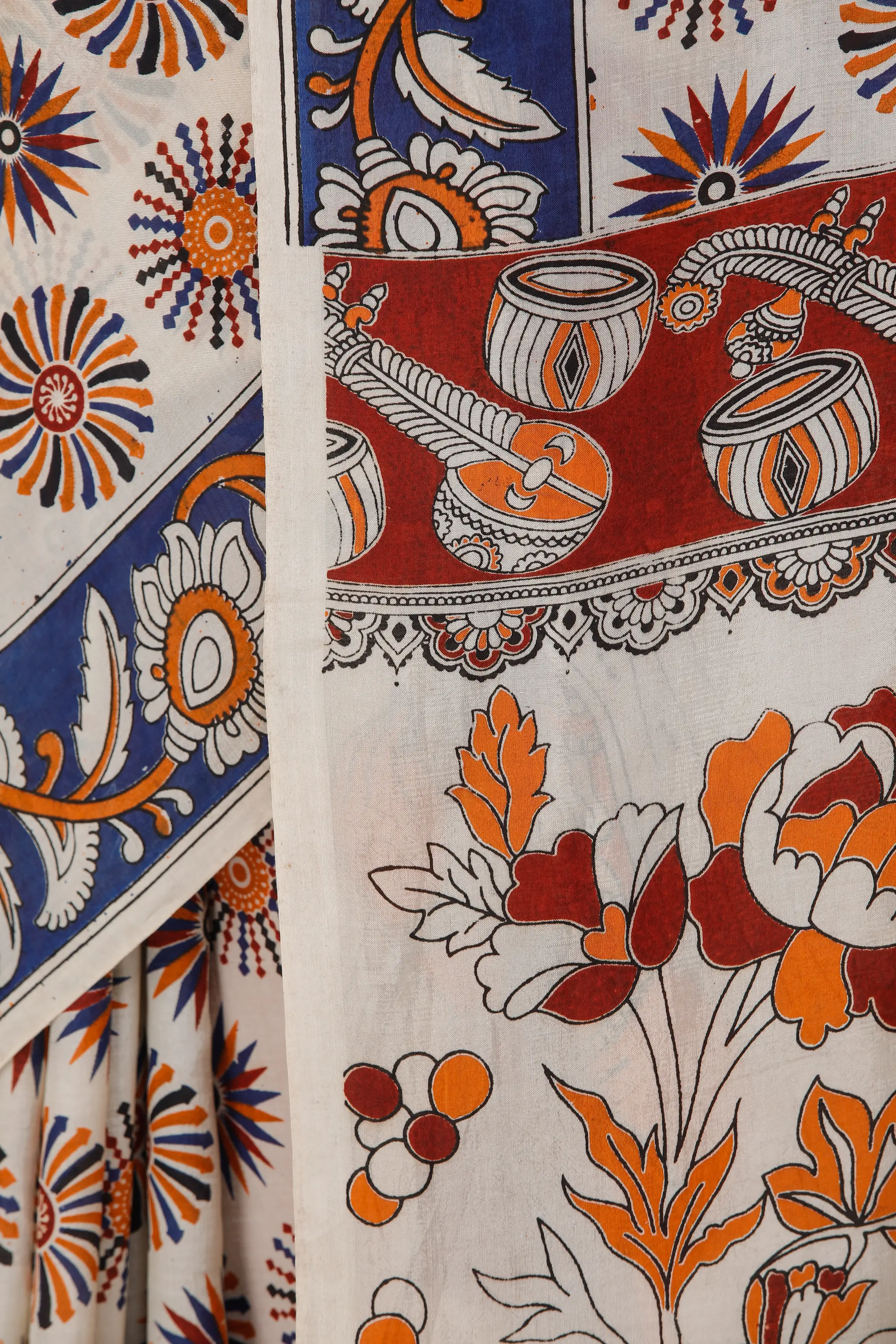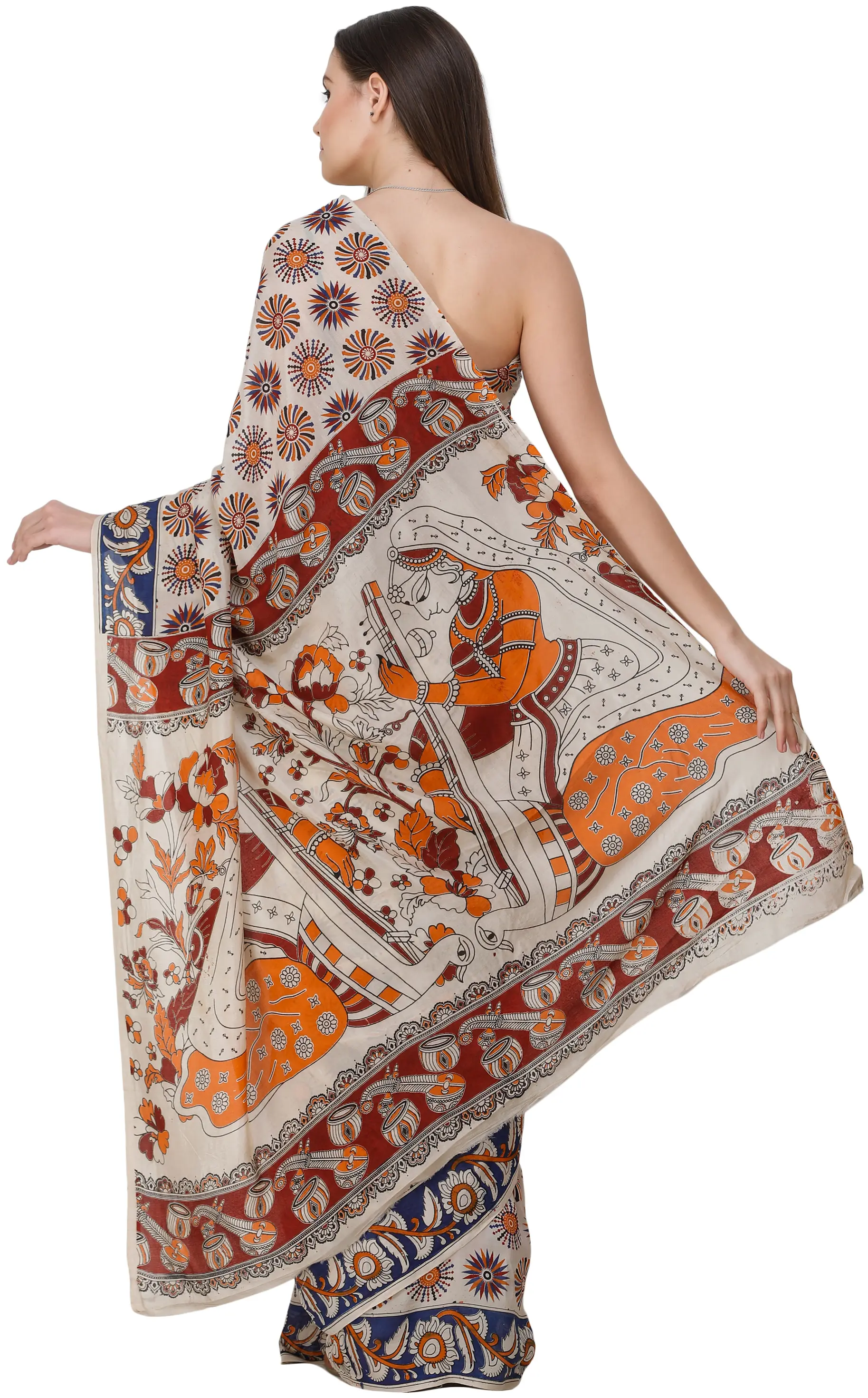 Mars-Red Kalamkari Saree with Printed Phool Bail All-Over from Telangana