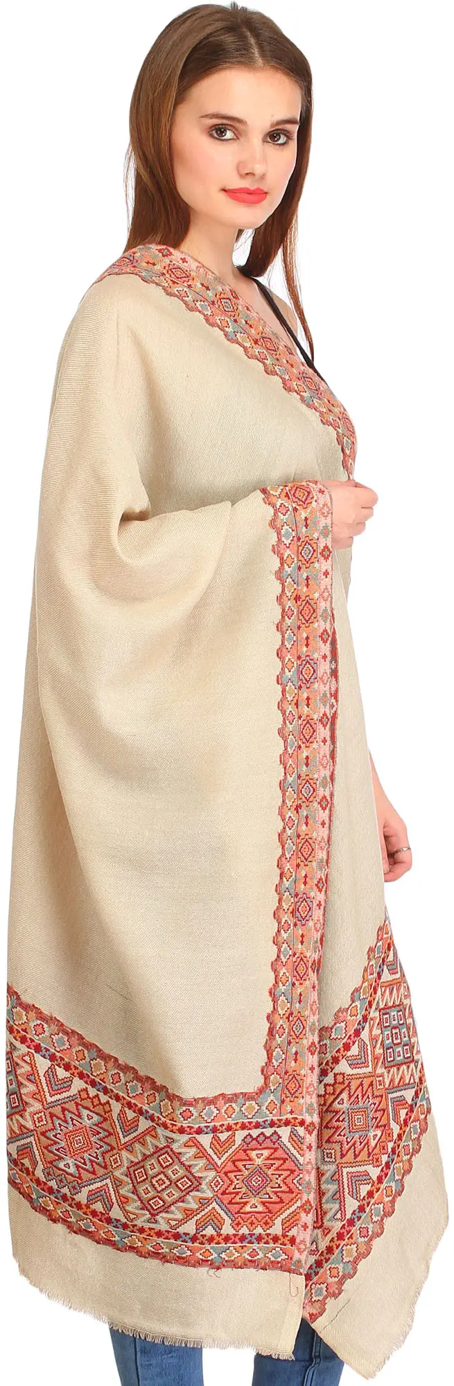 Double Shaded Bandhani Tie-Dye Shawl with Mirror Embroidered Palla from Gujarat