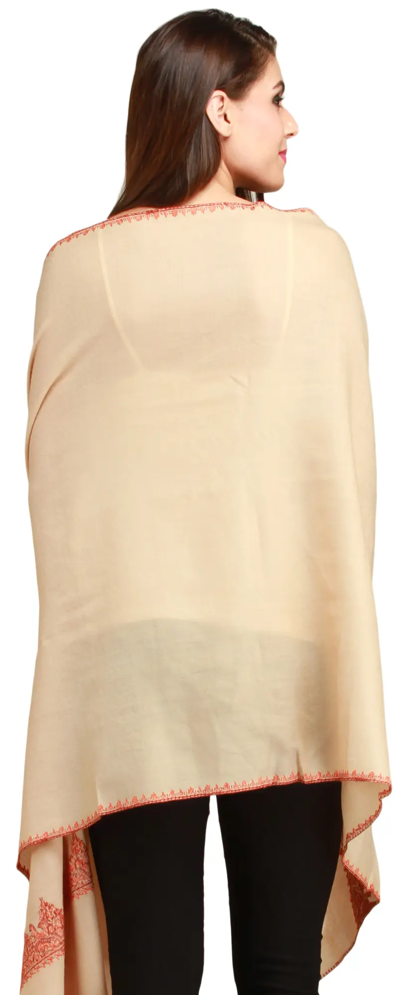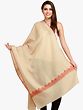 Ivory Tusha Stole with Hashidar Hand Embroidery from Kashmir