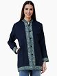 Pageant-Blue Woolen Jacket from Kashmir with Chain-stitch Embroidery