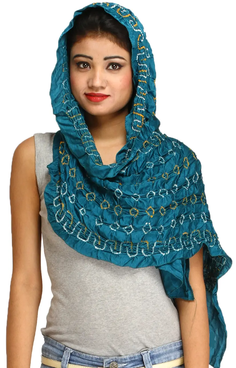 Batik Printed Banglori Art Silk Dupatta with Peacock Border and Tassels