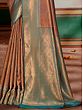 Moonlight-Jade Floral Leaf woven Pure Silk Saree and Golden Thread work Border with Paisley Motifs from Bangalore