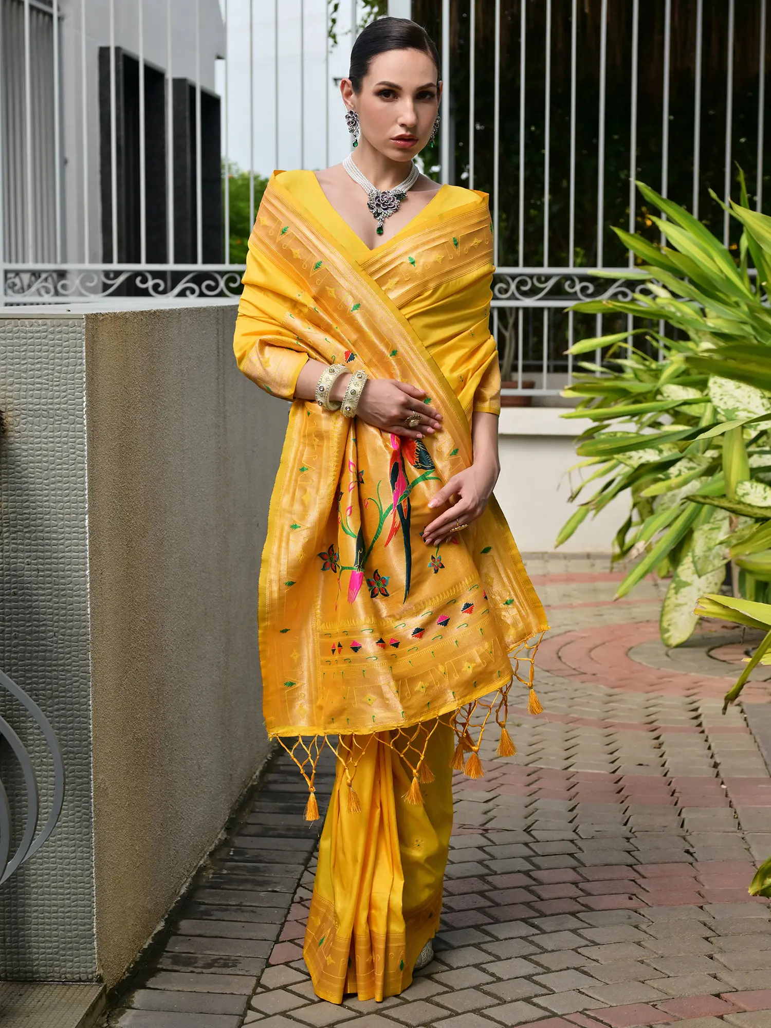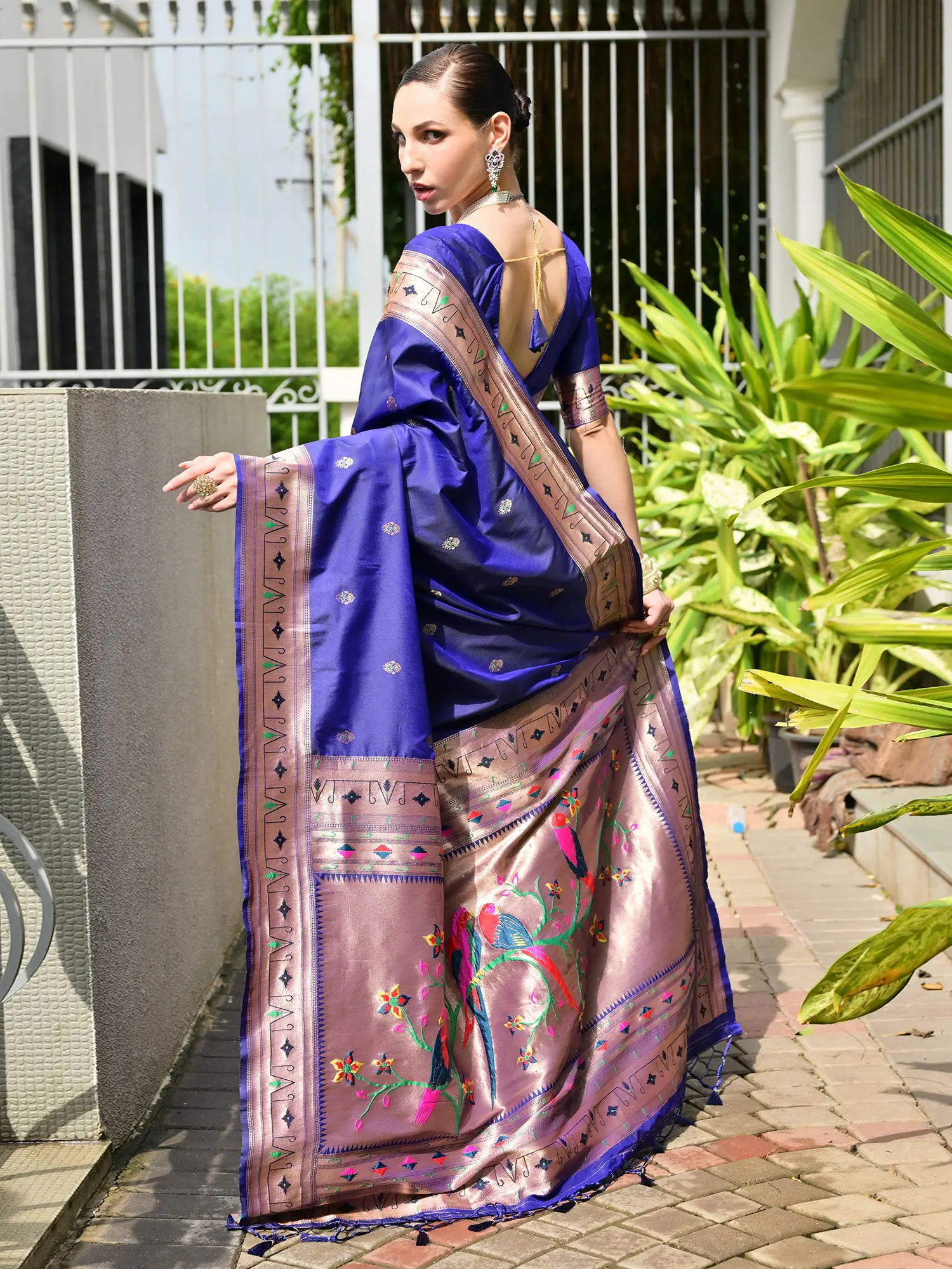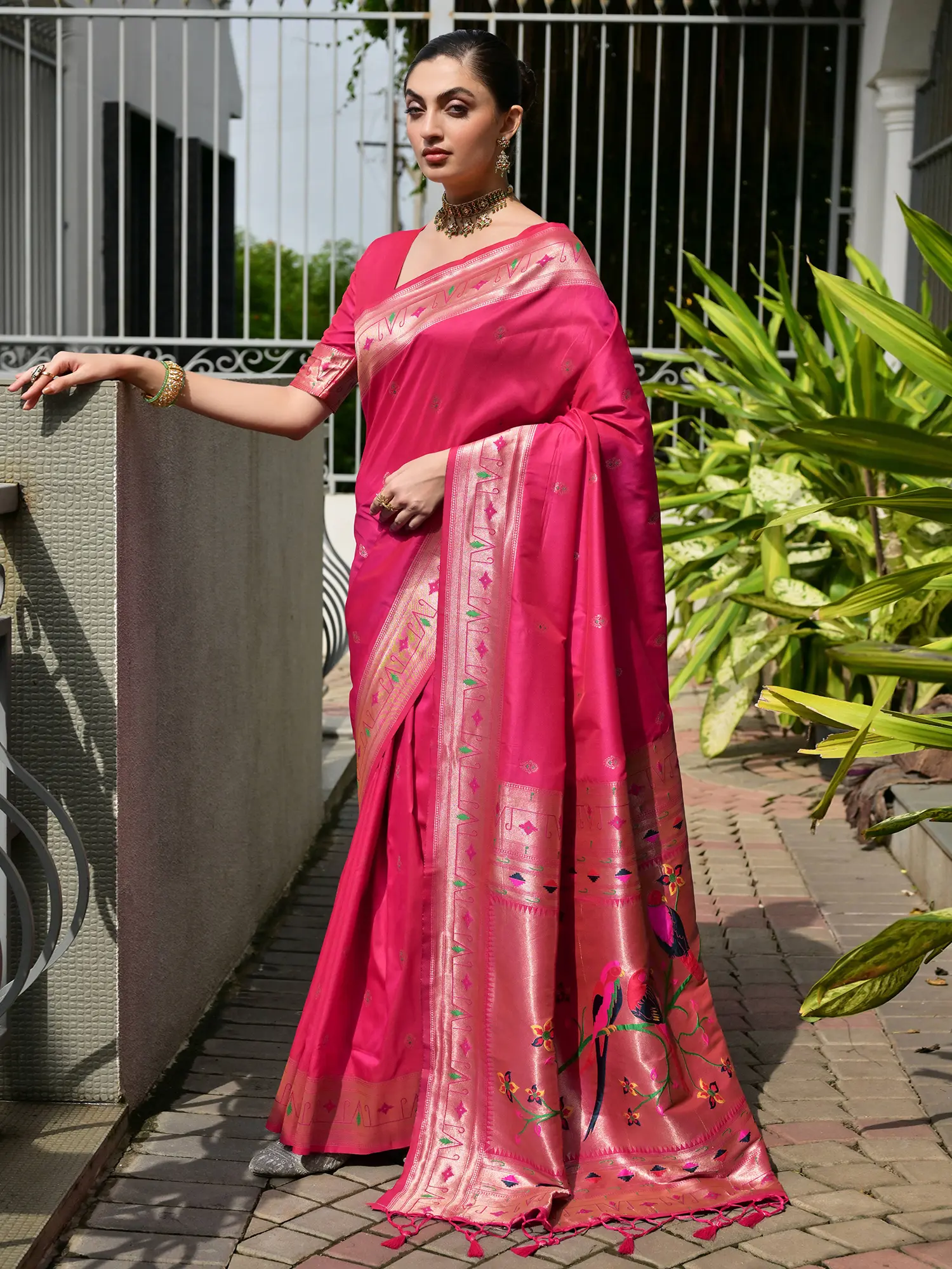 Paithani Silk Saree Meenakari Weaves Pallu Pure Zari Woven Border Banarasi Traditional Ethnic Wedding And Festive Wear