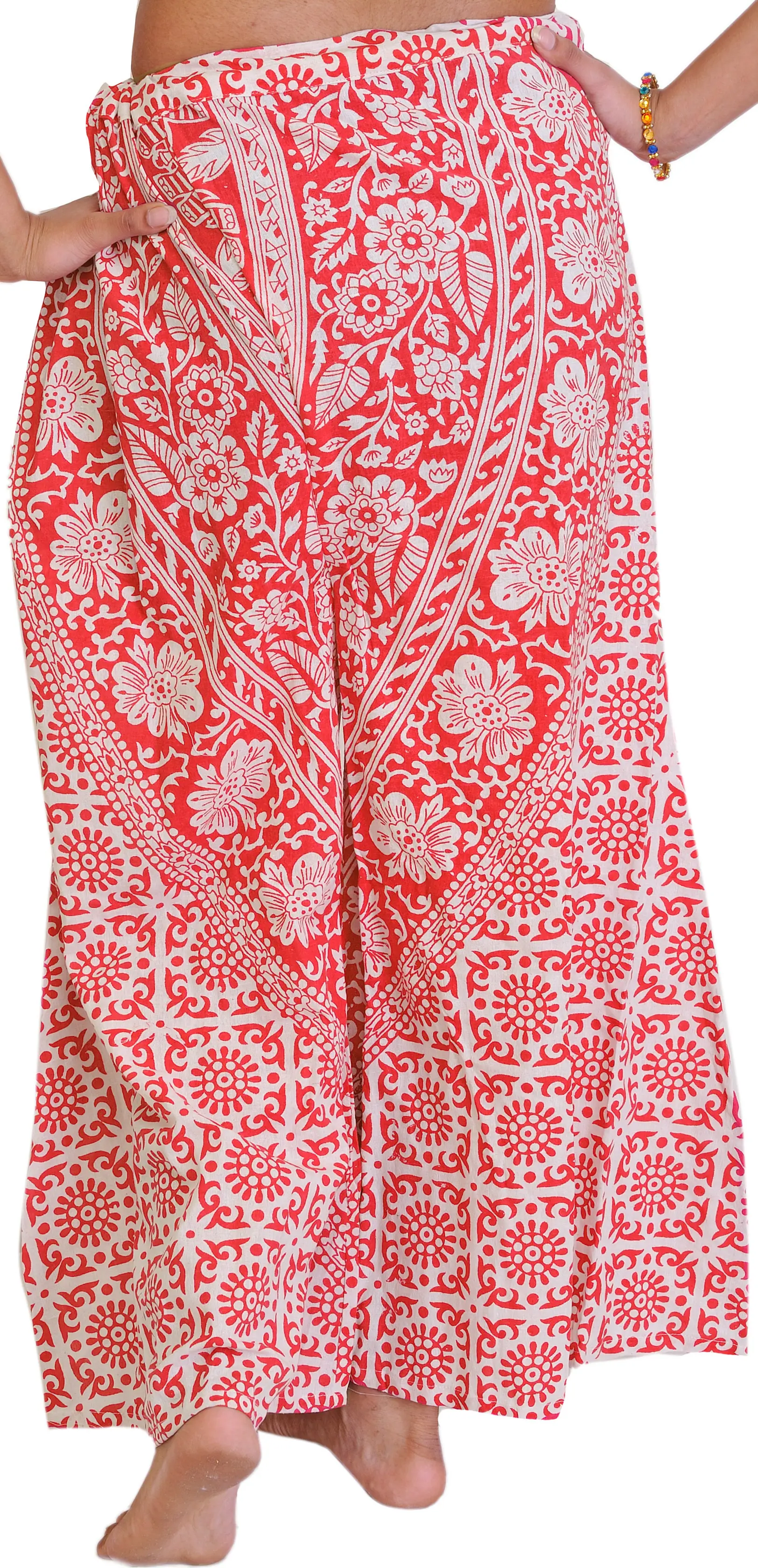 Enjoy comfort and style in these Pilkhuwa Palazzo Pants, which feature adorable printed flowers and elephants. The palazzo pants' relaxed fit and wide-leg silhouette allow for maximum mobility, making them ideal for both informal get-togethers and celebratory events. An air of playfulness is added by the whimsical print, resulting in an enjoyable and stylish appearance. These palazzo pants look great when worn with a kurta or solid-colored shirt to create a stylish look that seamlessly blends trendiness and comfort. These chic and adaptable palazzo pants will add a stylish touch to your outfit.