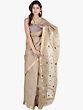 CornStalk Chanderi Sari from Madhya Pradesh with Zari-Woven Border and Bootis