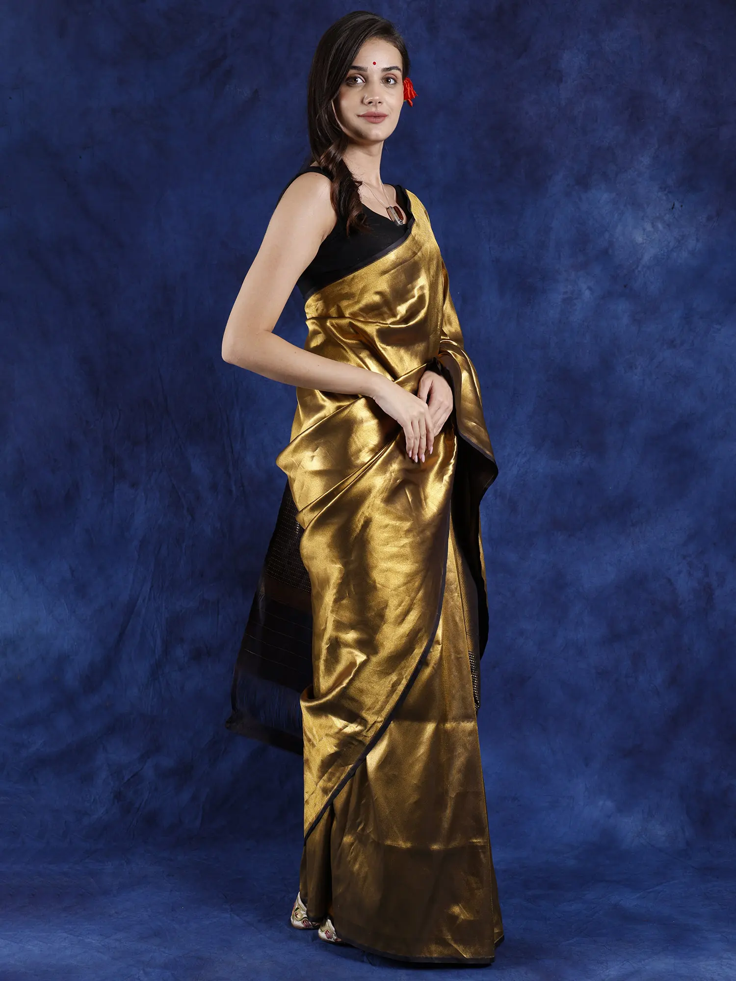 The contrast of golden and black, two mystical and regal colors makes this handloom saree fit for queens- a perfect way to relive the luxury of the historic traditional Banarasis.