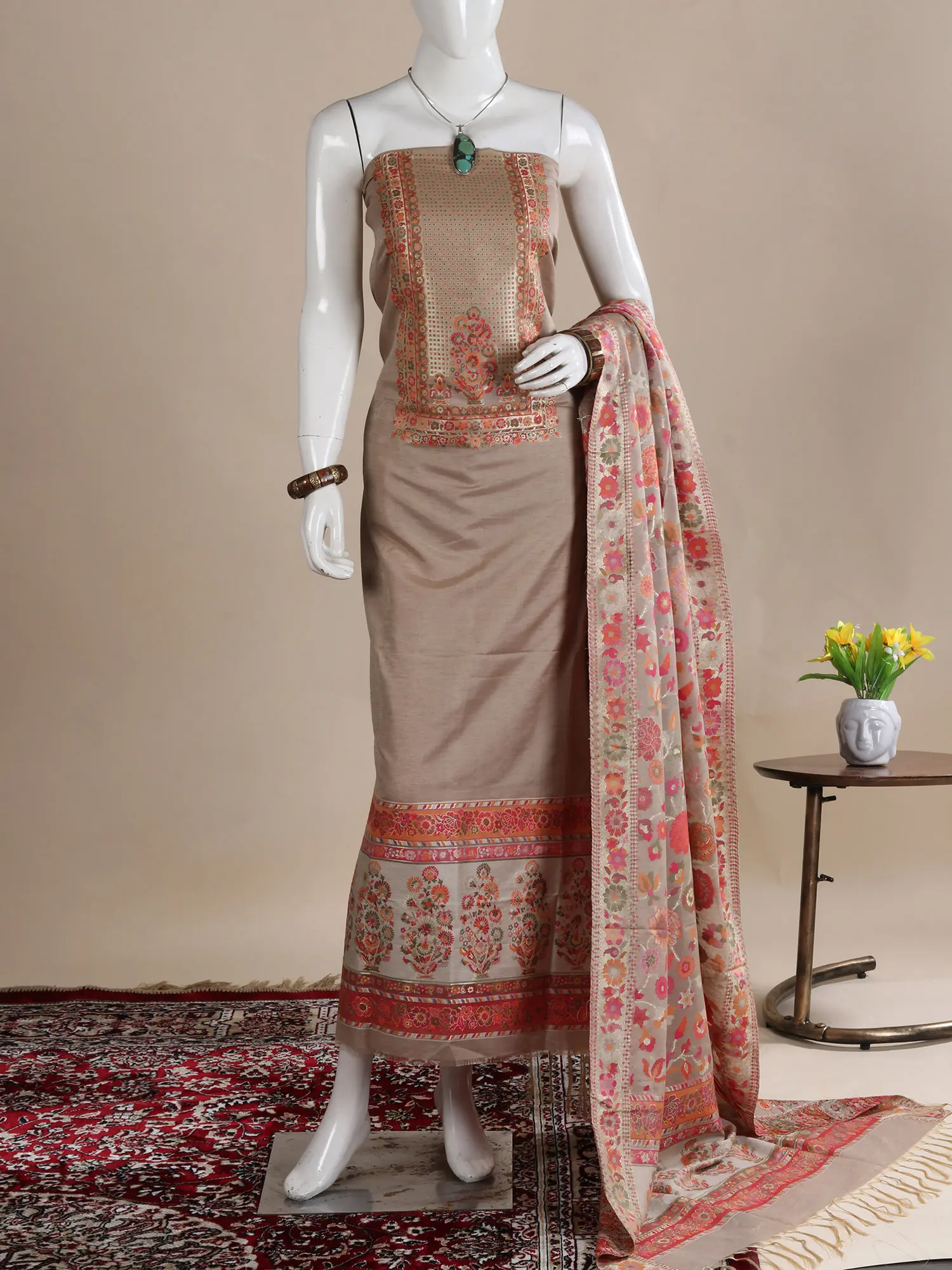 Stole from Kashmir with Aari Hand-Embroidered Chinar Leaves