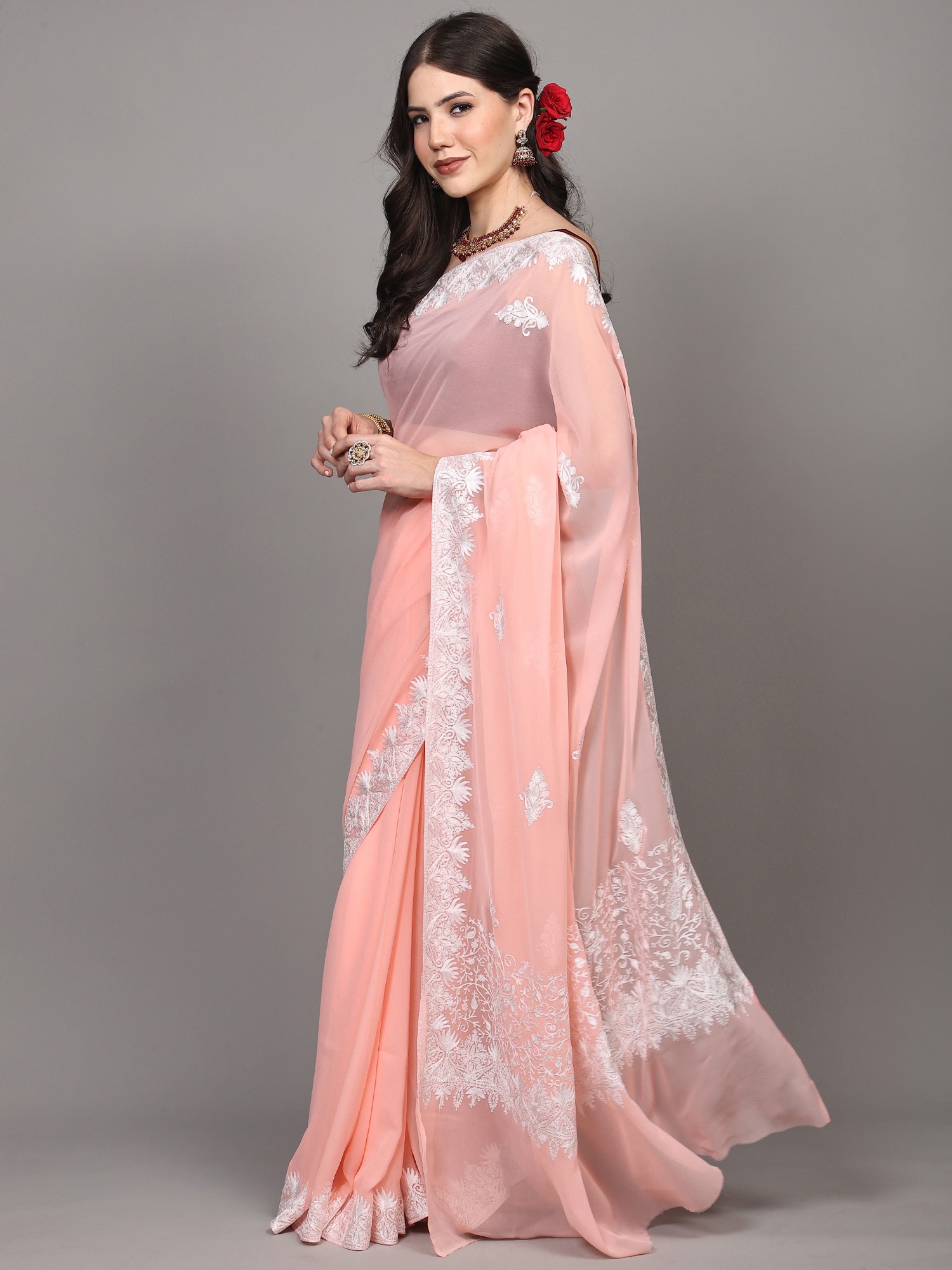 Ethereal Elegance: The Pale Rosette Georgette Saree