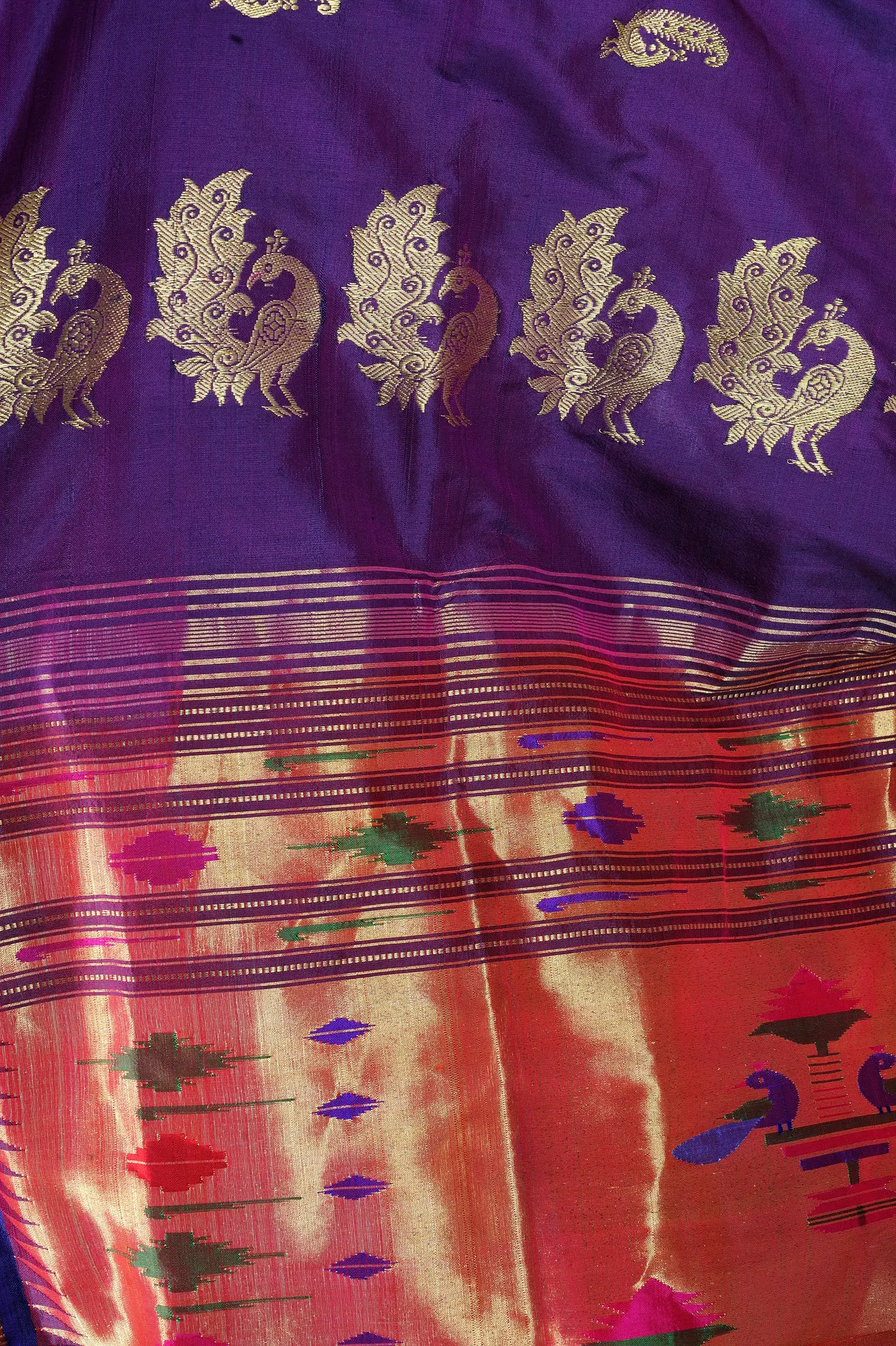 Purple-Magic Paithani Silk Sari with Hand-Woven Peacocks on Aanchal