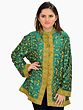 Galapagos-Green Jacket from Kashmir with Floral Embroidery by Hand