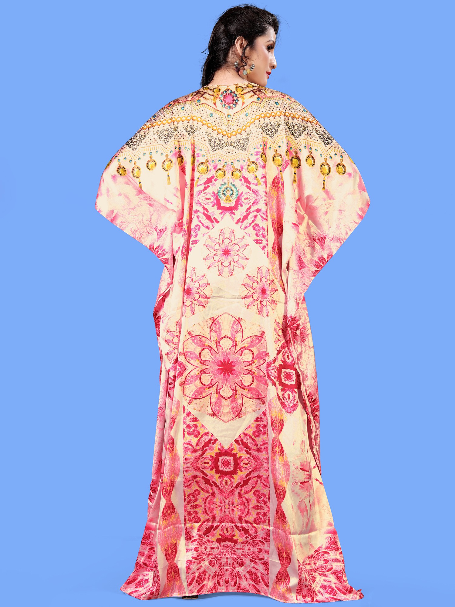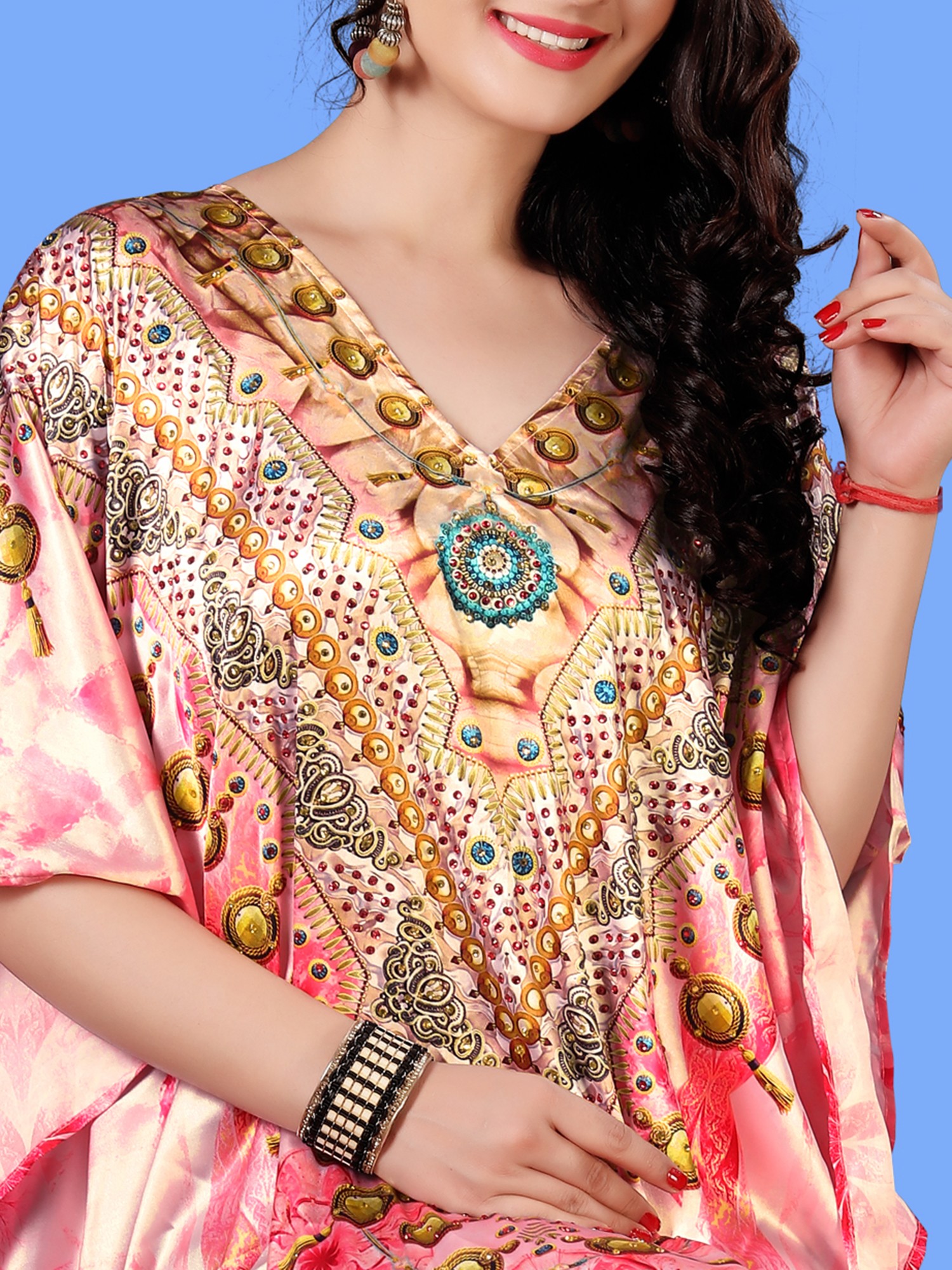 Multicoloured Long Kaftan with Printed Abstract Pattern