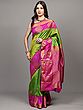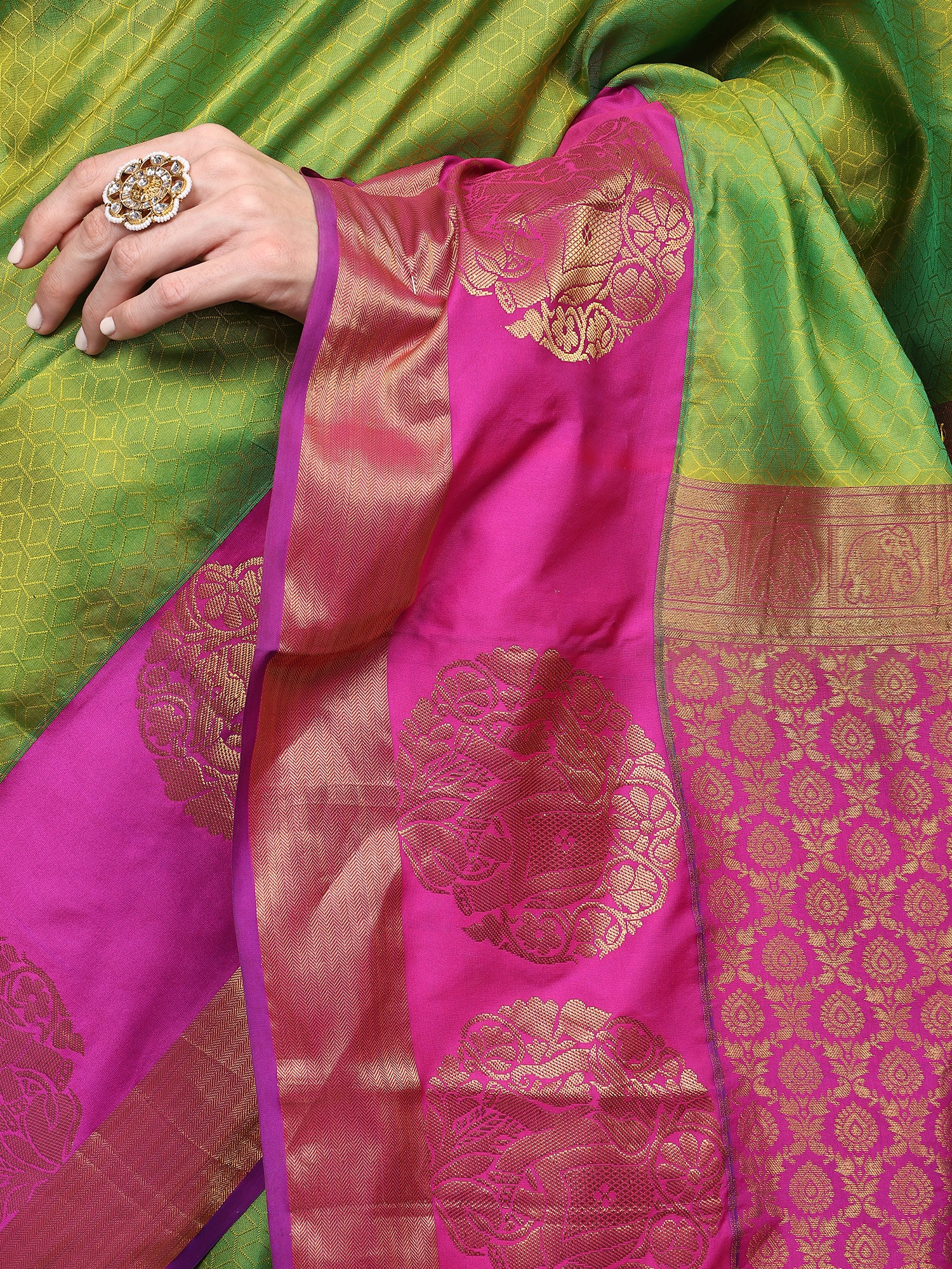 Parrot-Green Pure Silk Saree with Intricate Golden Thread work and Contrast Elephant Border from Bangalore