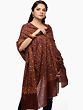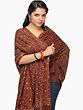 As is usual in almost all embroidered, or even woven, Kashmiri shawls, this piece also has plain ends, each about seven inches wide, on both sides of its length. The rest of its space has been covered by fine sozni embroidery consisting of three design-patterns : a border on all four sides, edge to edge on lengths, affording a frame to the entire needle-work, Paisley bands crowning the two outer arms of the border on breadths giving the two ends the distinction of pallas, and the field : the larger space contained within the framing border. The border consists of a floral creeper comprising three styles of flowers, a multi-petalled larger one, another, a seven-petalled, one of a medium size, and yet another, a tiny three-petalled form tugged along leaves on the linear courses that on one hand represent the creeper’s stems, and on the other, the frame around the two flowers. Though differently styled, the Paisley band consists, besides the Paisley motifs, of the same flower-forms as in the border. The field has been adorned with bels with linear branches and a wide range of flower-forms and tiny leaves, some of them running across the entire length.
