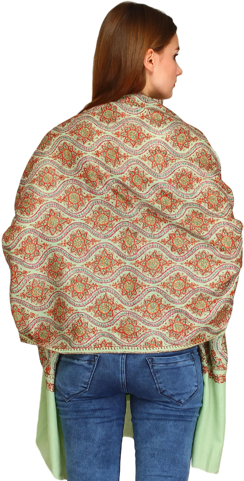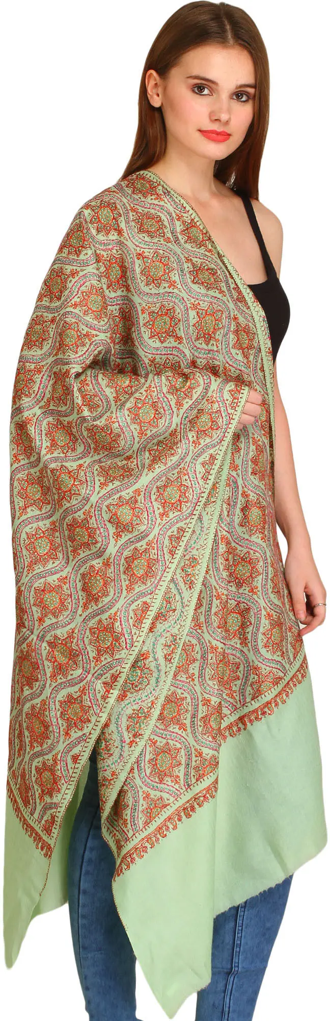 Pure Tusha Shawl from Kashmir with All-Over Needle Embroidery by Hand