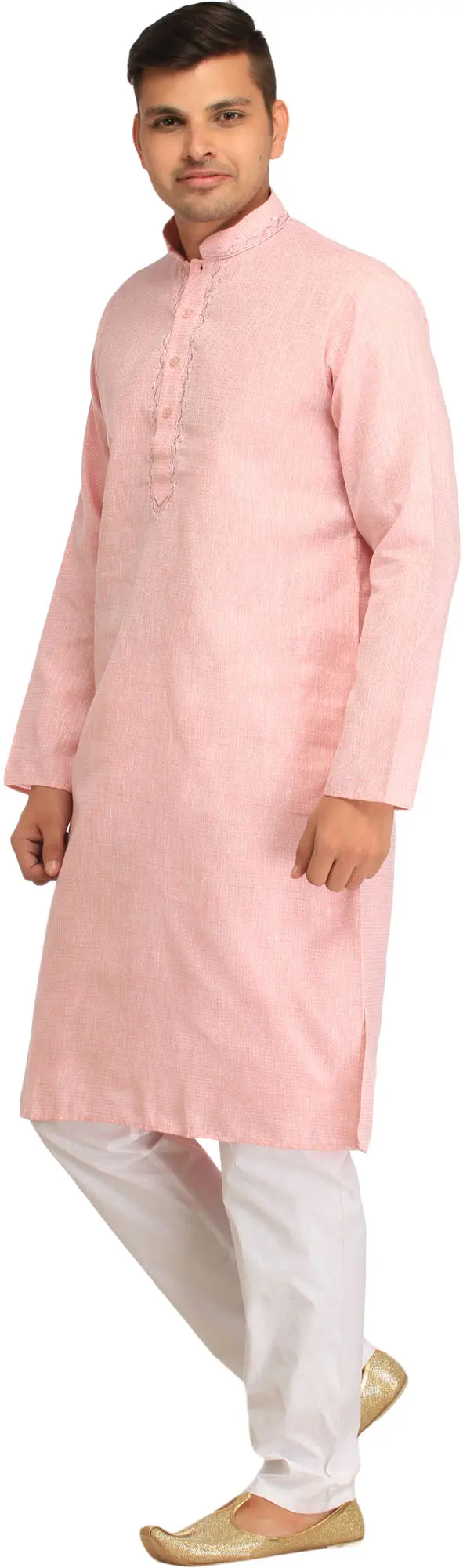 Wrap yourself in the beauty of this “Pastel Kurta Pajama Set,” which integrates traditional artistry with contemporary style. This regal creation has been made from pure cotton and has a delicate thread weaving throughout, which highlights the self-design and detailed embroidery on the neck. The pastel tones convey a gentle beauty that is appropriate for any occasion, and the breathable cotton provides comfort.