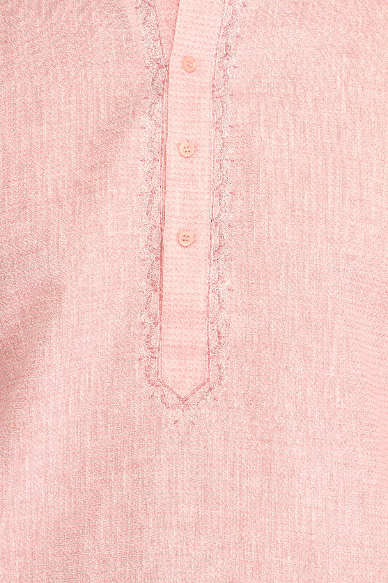 Pastel Kurta Pajama Set with Thread Weave in Self and Embroidery on Neck