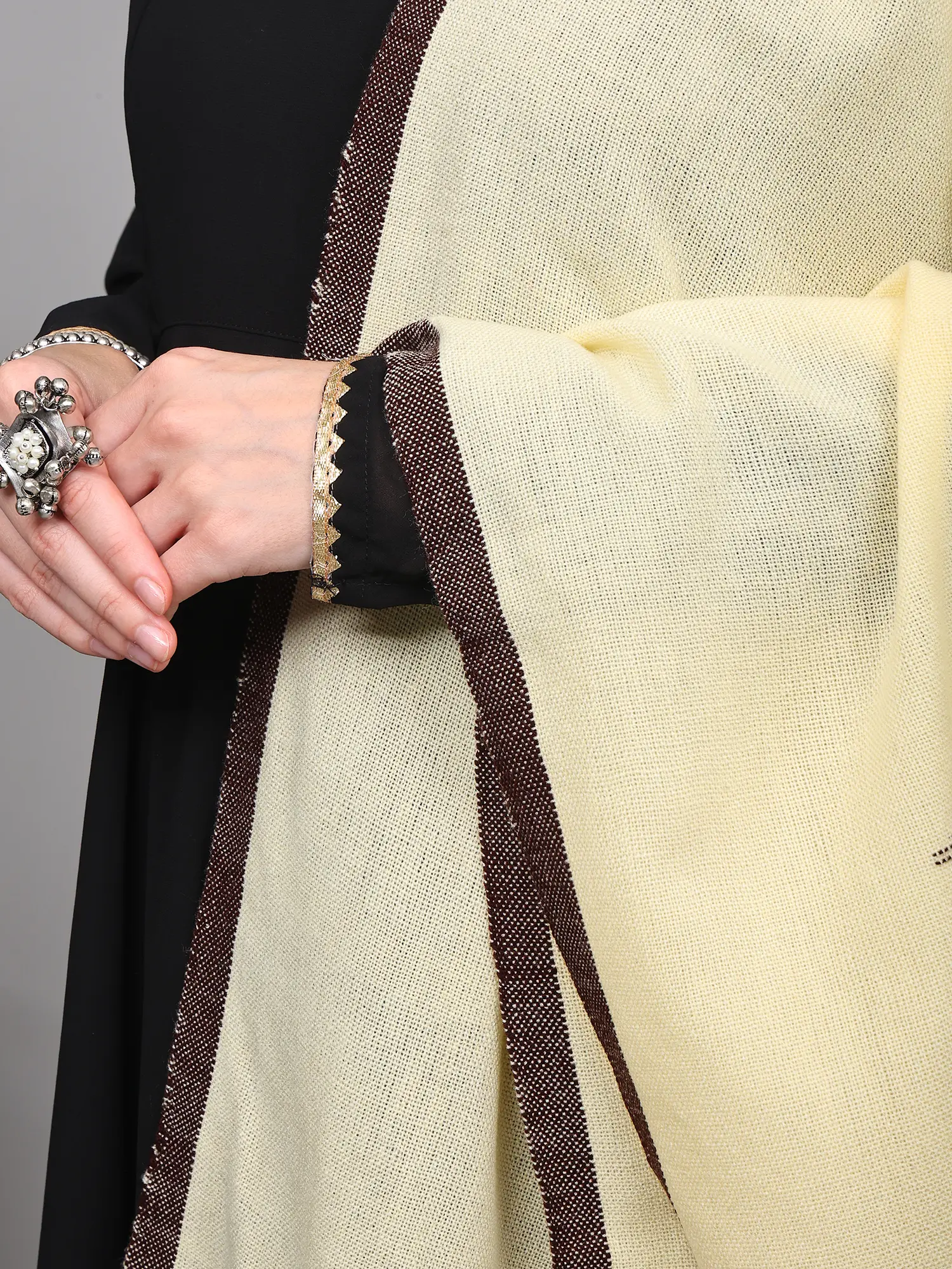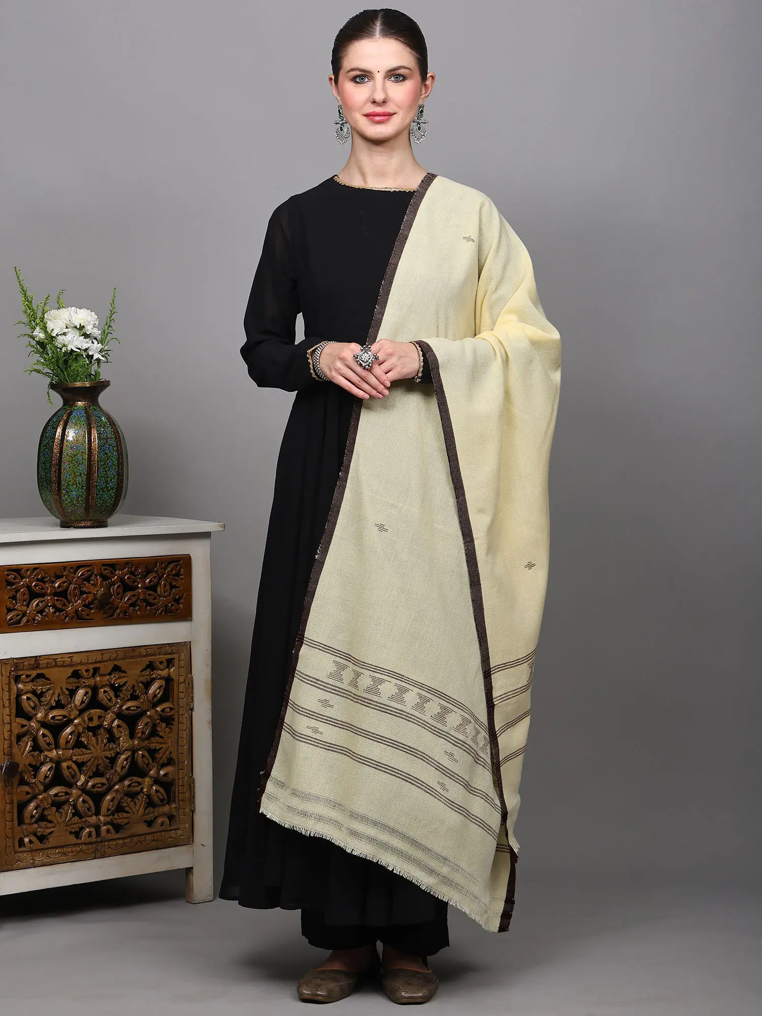 Woolen Plain Shawl from Kutch with Mirror Embroidery