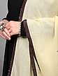 Cannoli-Cream Tussar Silk Handloom Saree with Woven Fish and Ethnic Motifs from Chhattisgarh