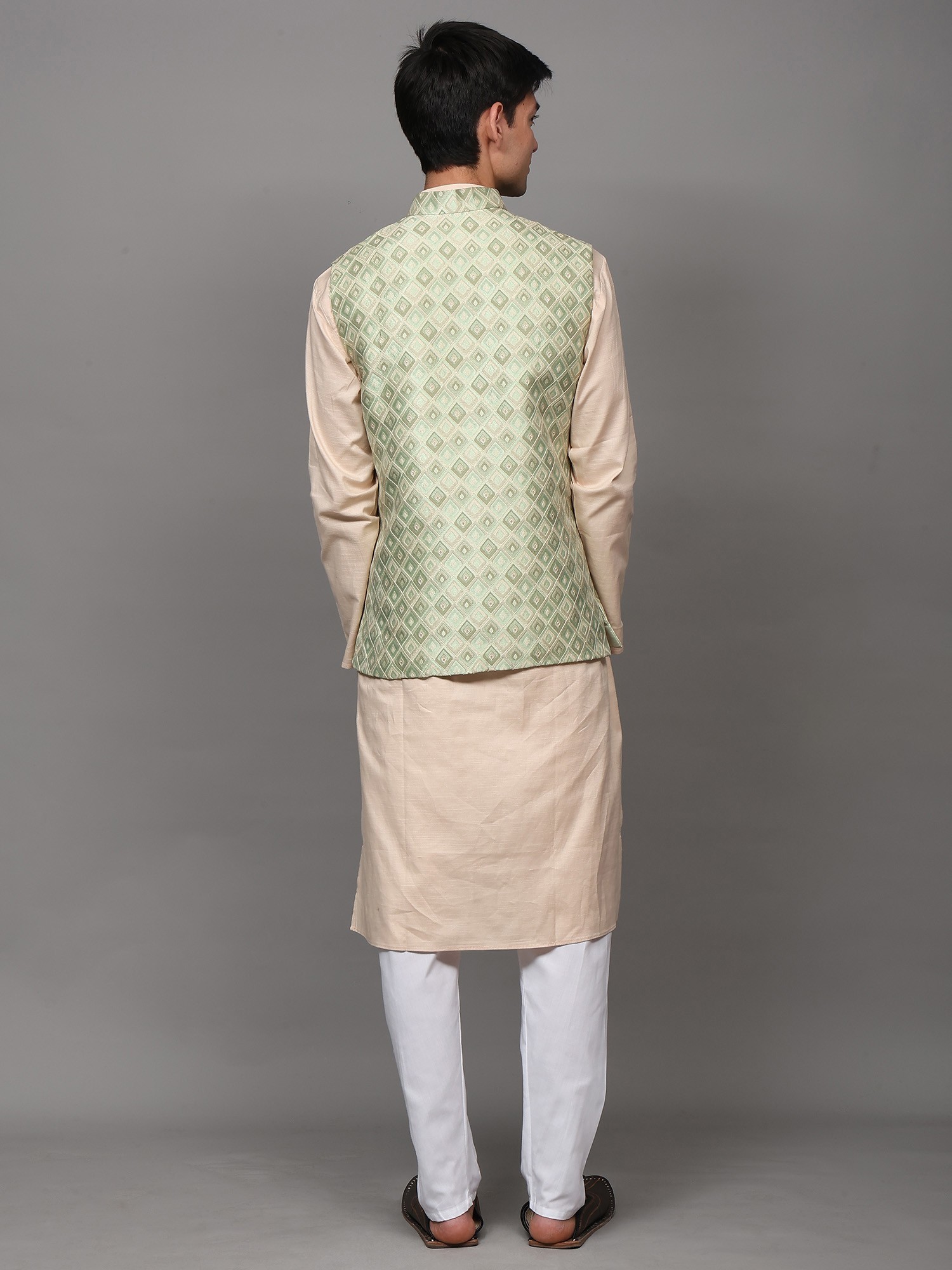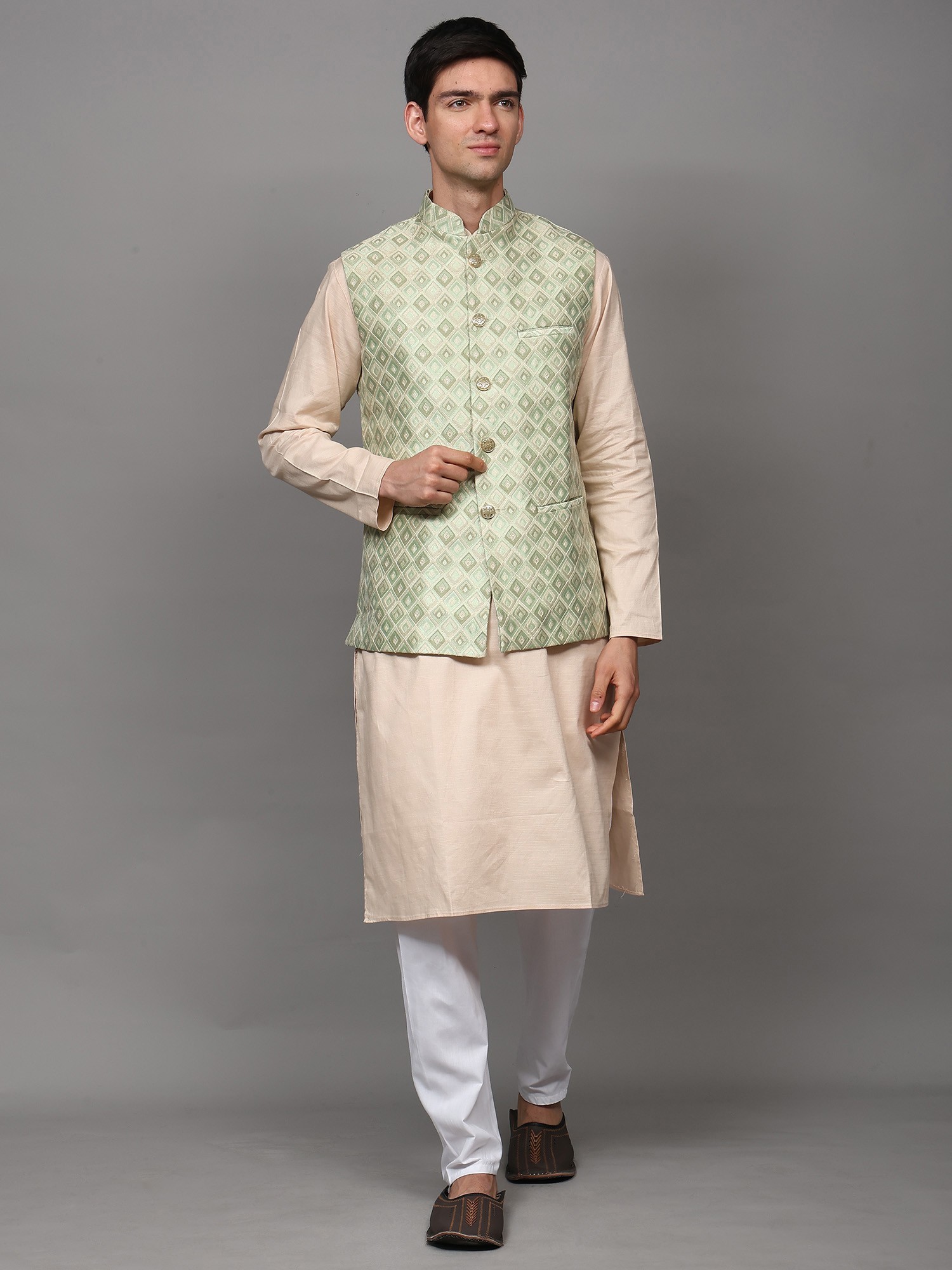 Experience the perfect blend of tradition and contemporary fashion with this impeccably designed waistcoat. Tailored for the modern gentleman, this piece adds a layer of sophistication and cultural flair to any ensemble. Whether you're attending a festive celebration, a wedding, or simply want to make a statement with your everyday style, this waistcoat is an exceptional choice. Crafted from art silk, this waistcoat offers a luxurious feel and a subtle sheen that catches the eye without being overpowering. The lightweight fabric ensures comfortable wear, allowing you to move with ease and confidence. It's a versatile addition to your wardrobe that you'll reach for time and time again.
