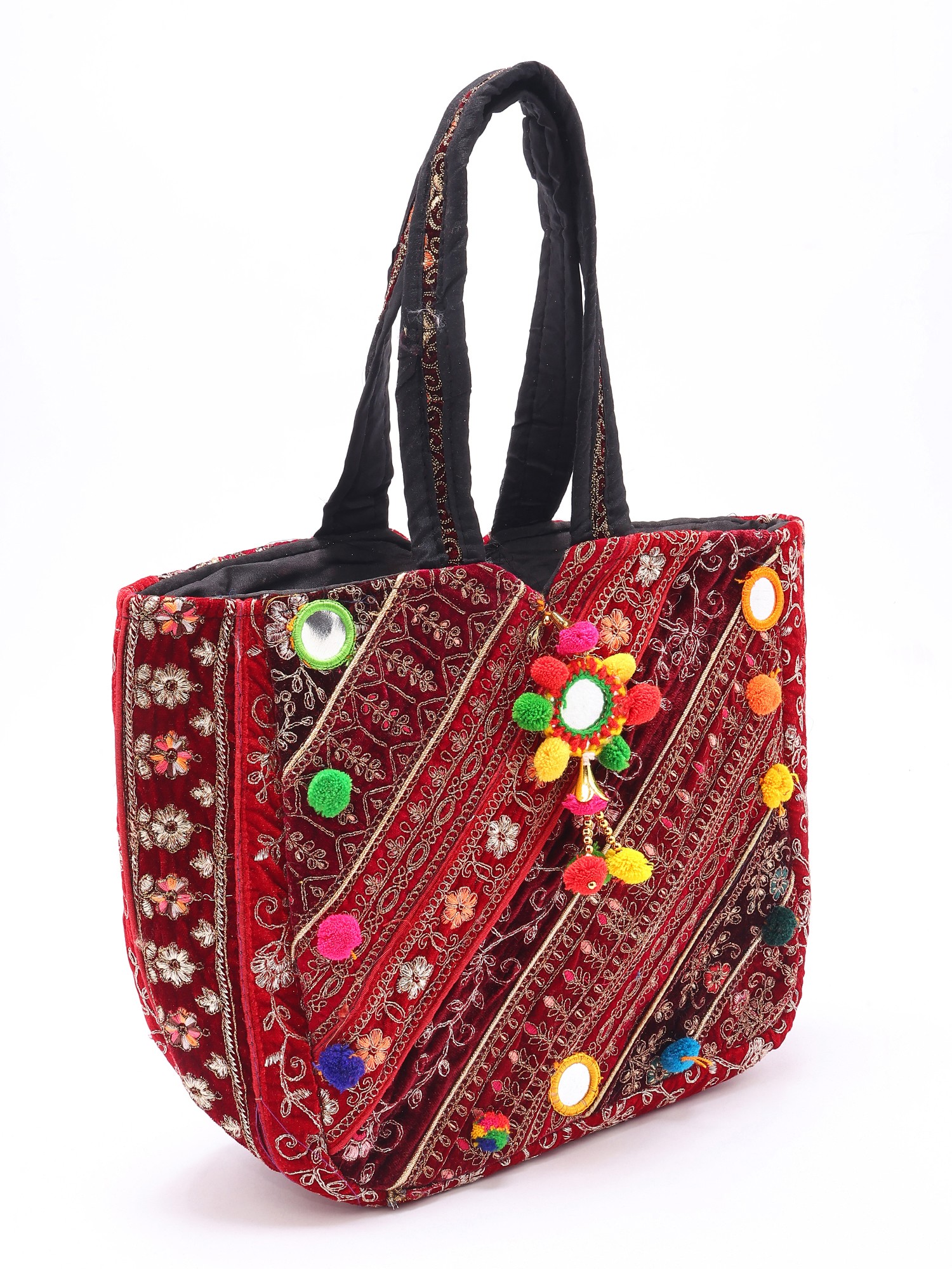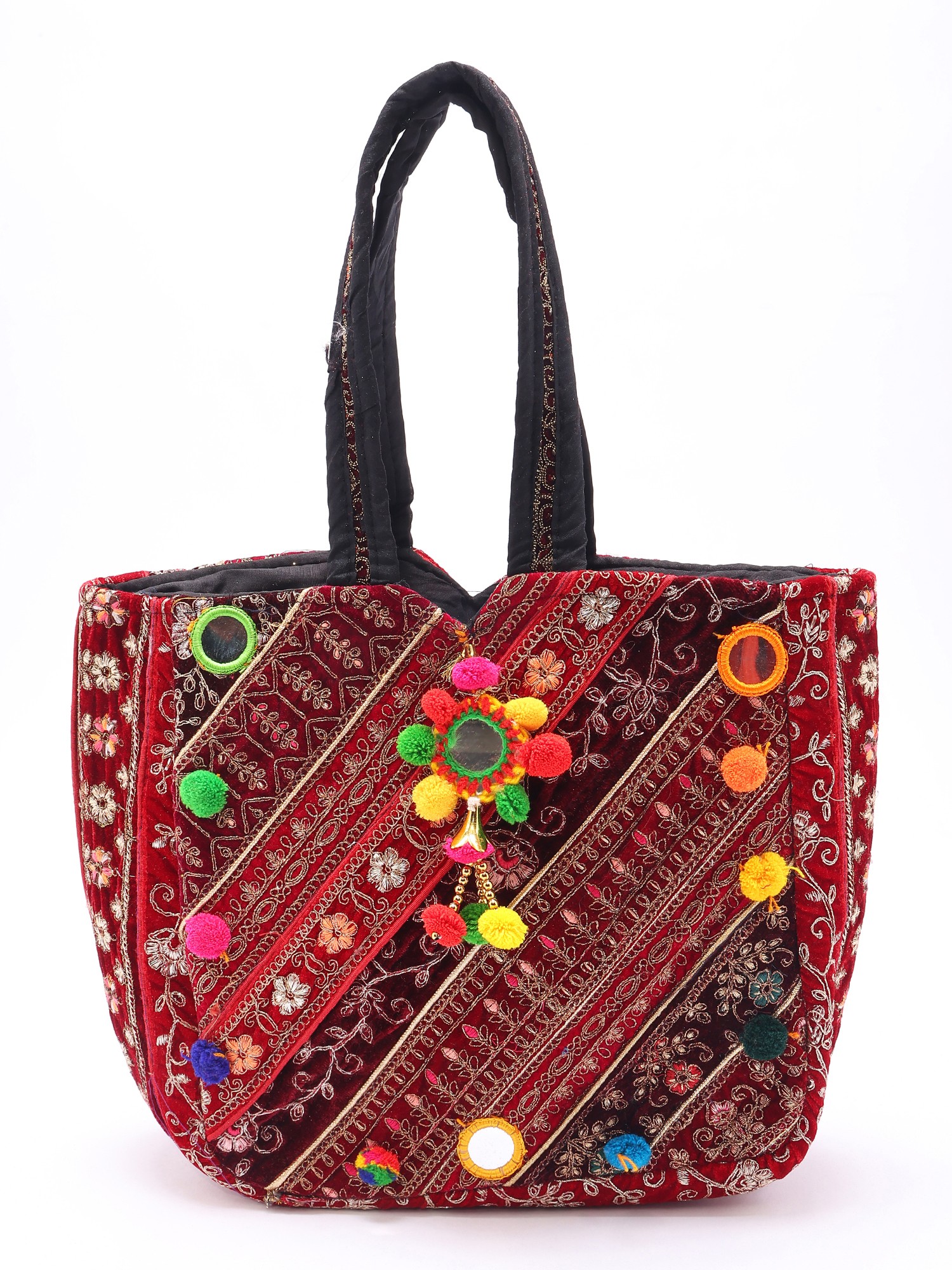 Patchwork Embroidered Shopper Bag from Kutch with Cowrie Shell and Beads work