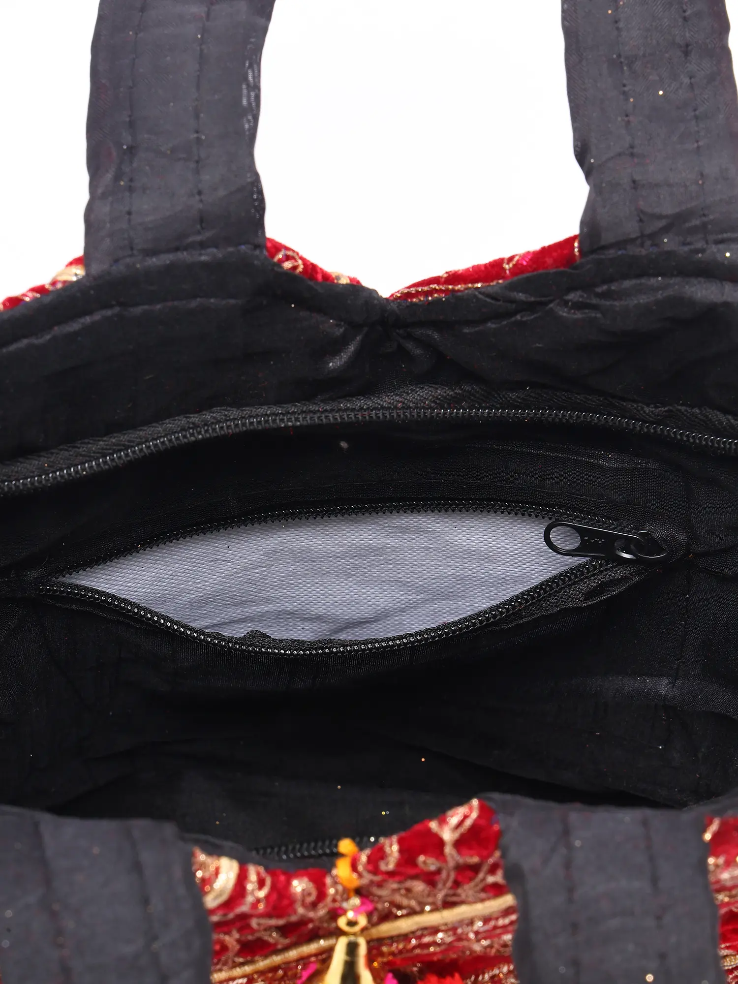 Shopper Bag with Printed Multicolor Paisleys and Zipper Closure