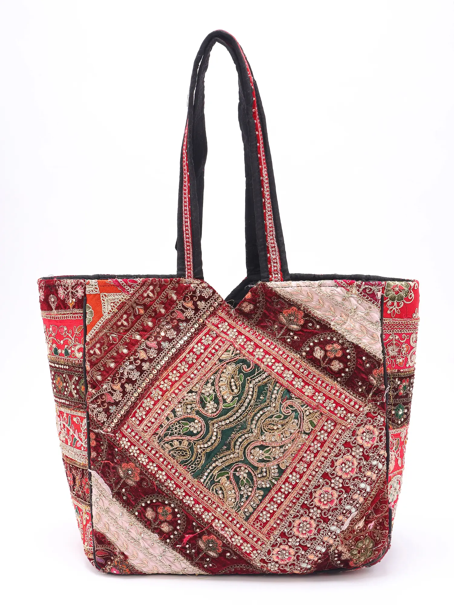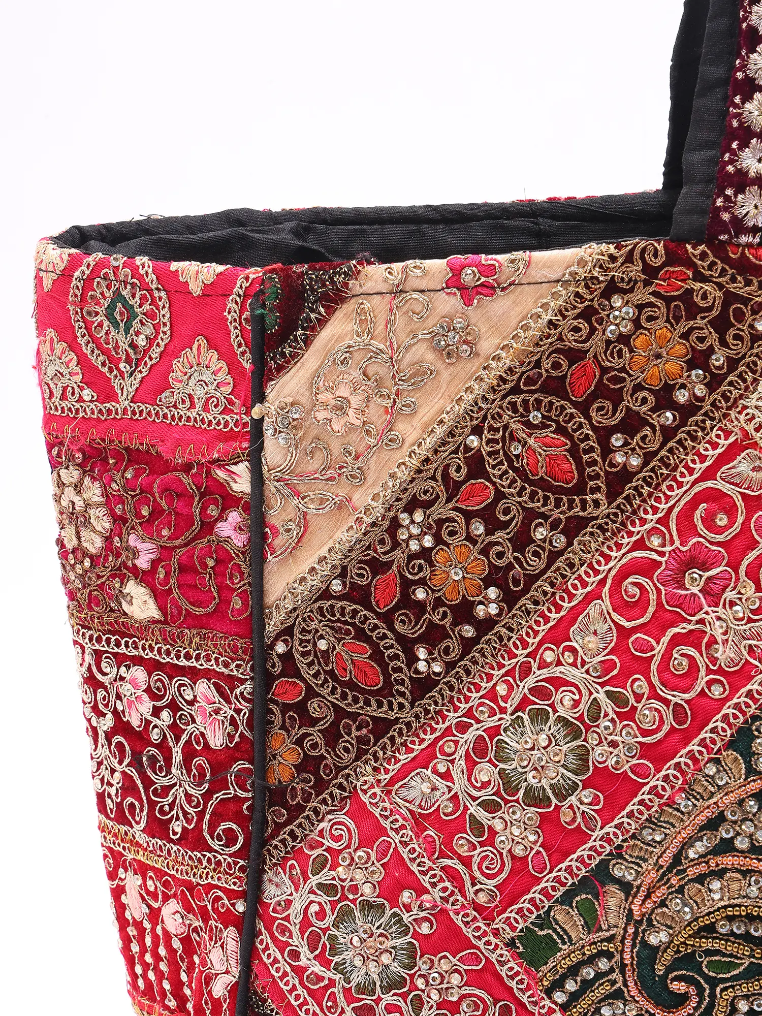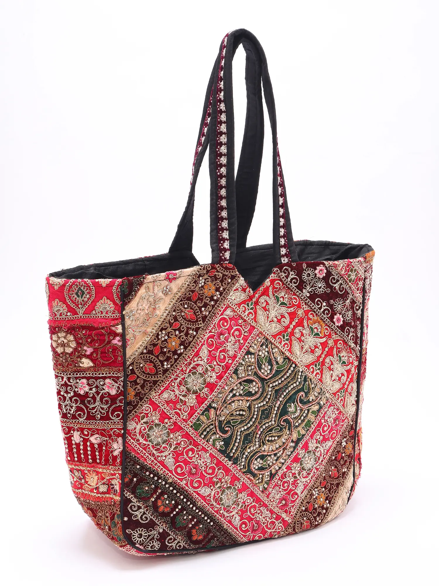 Shoulder Bag with Mirrors-Sequins Embroidered Motifs from Kutch