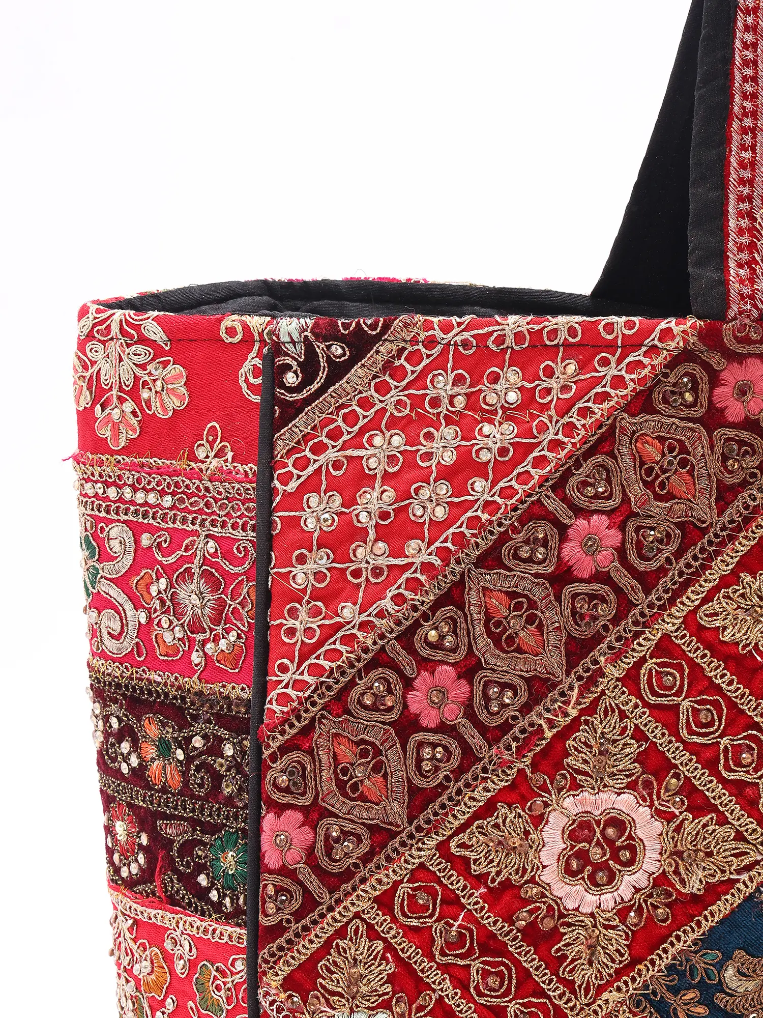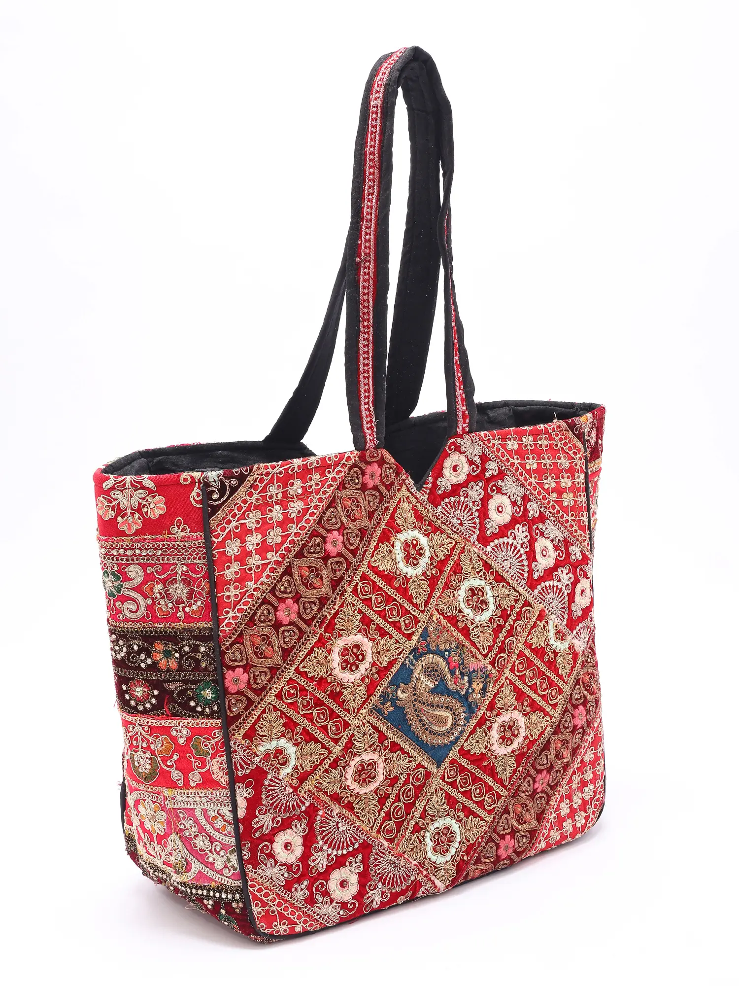 Patchwork Embroidered Shopper Bag from Kutch with Cowrie Shell and Beads work