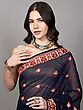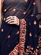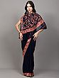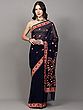 Jet-Black Floral Embroidered Wedding Saree with Crystals and Patch Borde