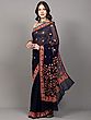 Mykonos-Blue Kantha Embroidered Crepe Saree with All-over Abstract Print and Sequins work
