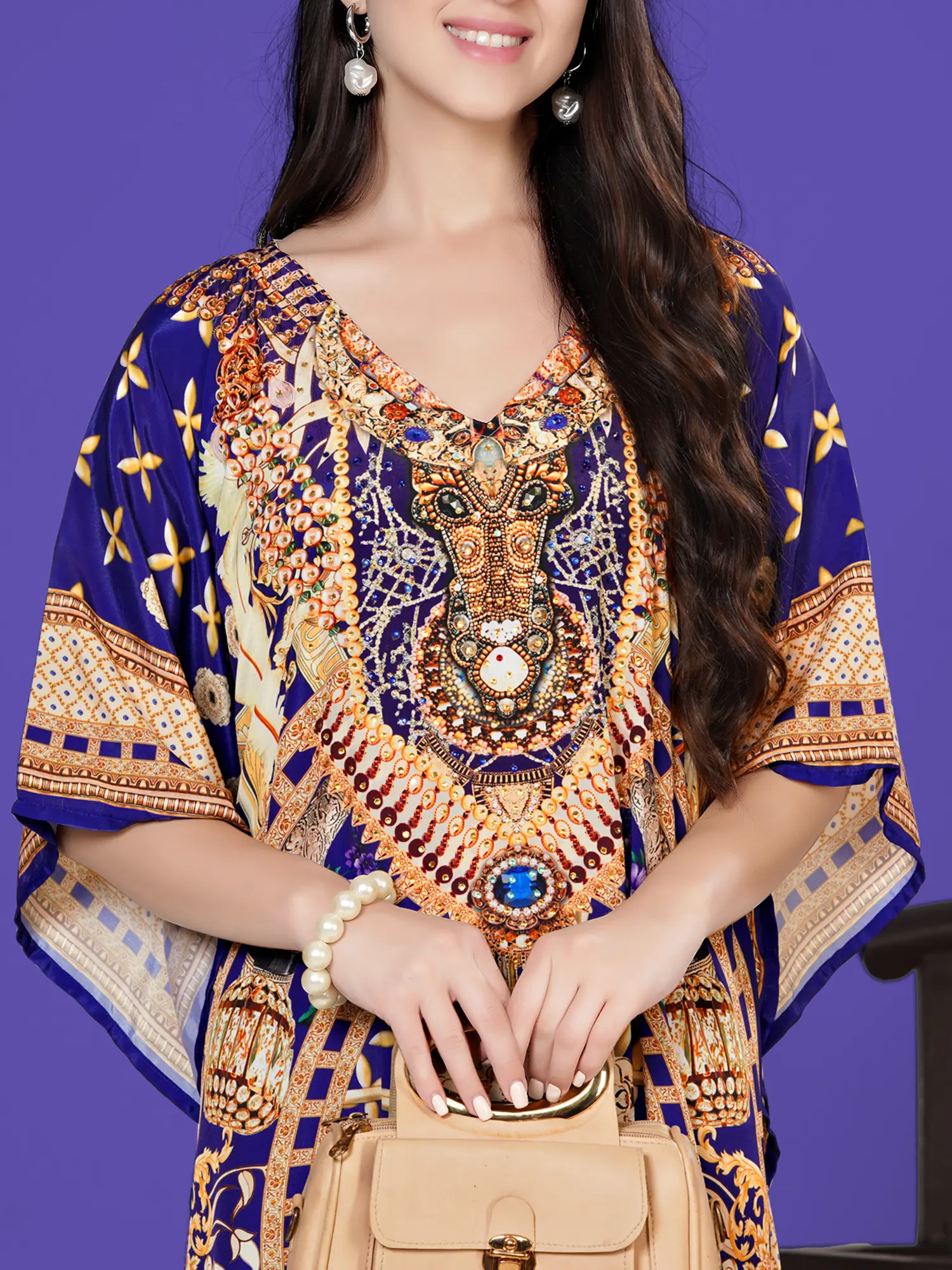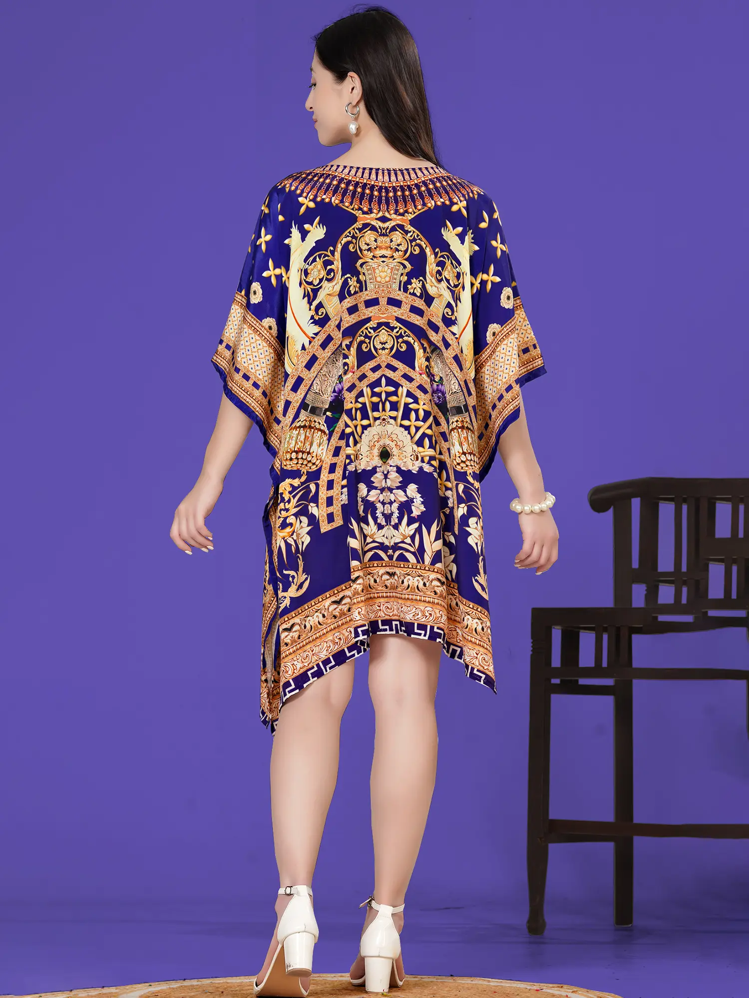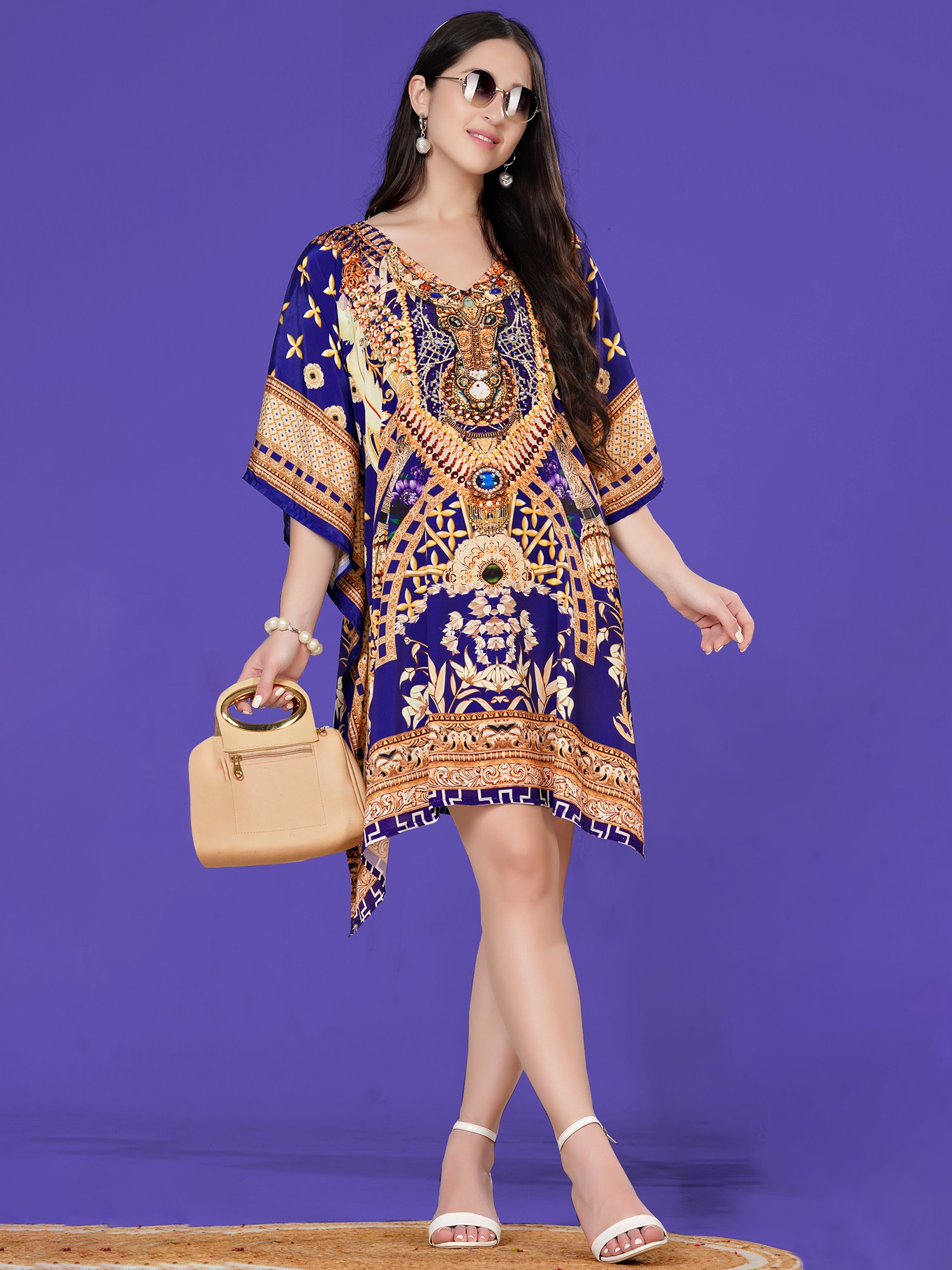 Blue and Yellow Printed Floral Georgette Short Kaftan