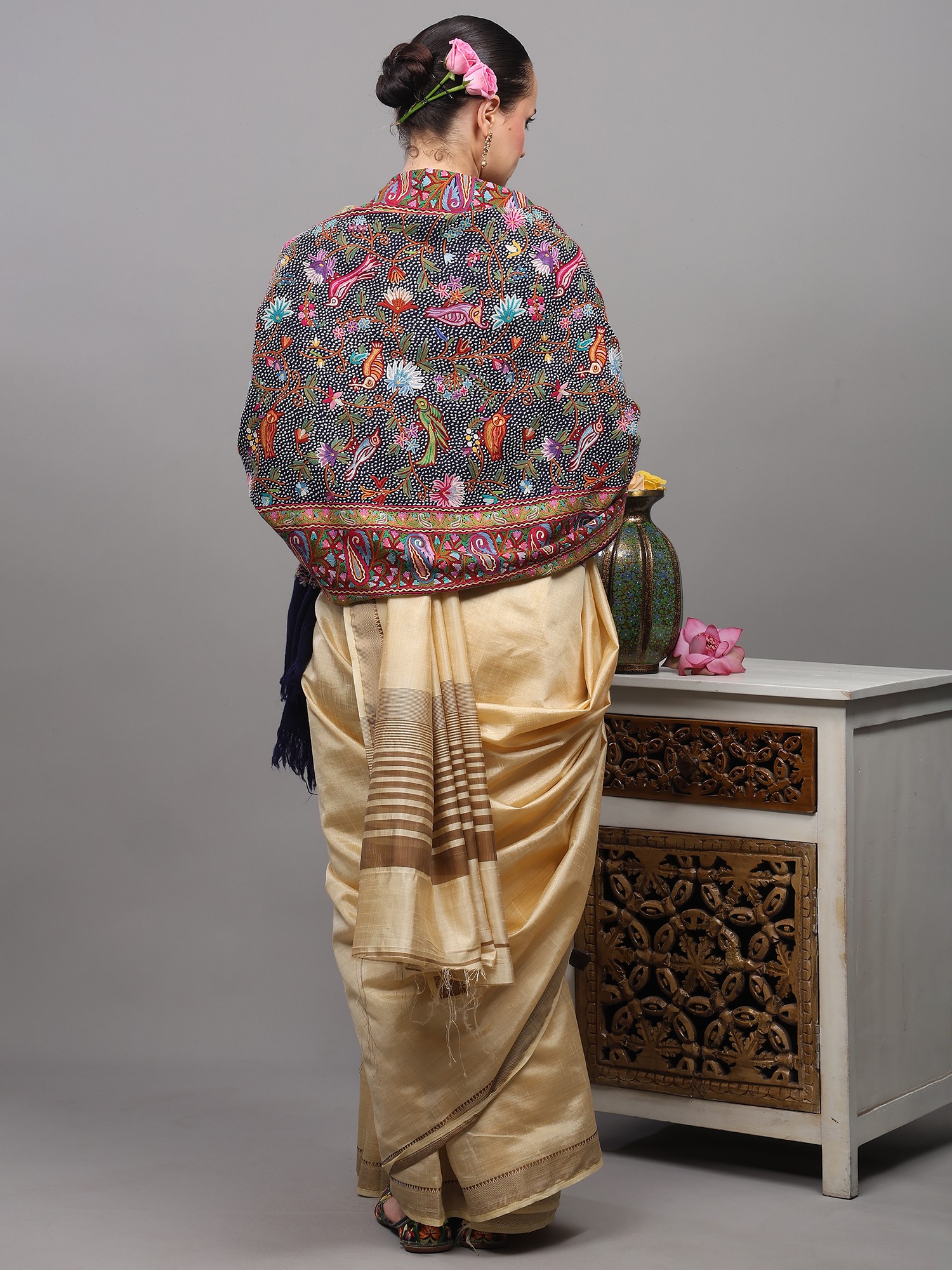 Pure Wool Shawl from Amritsar with Aari Embroidered Floral Vines