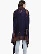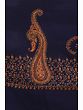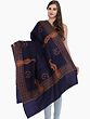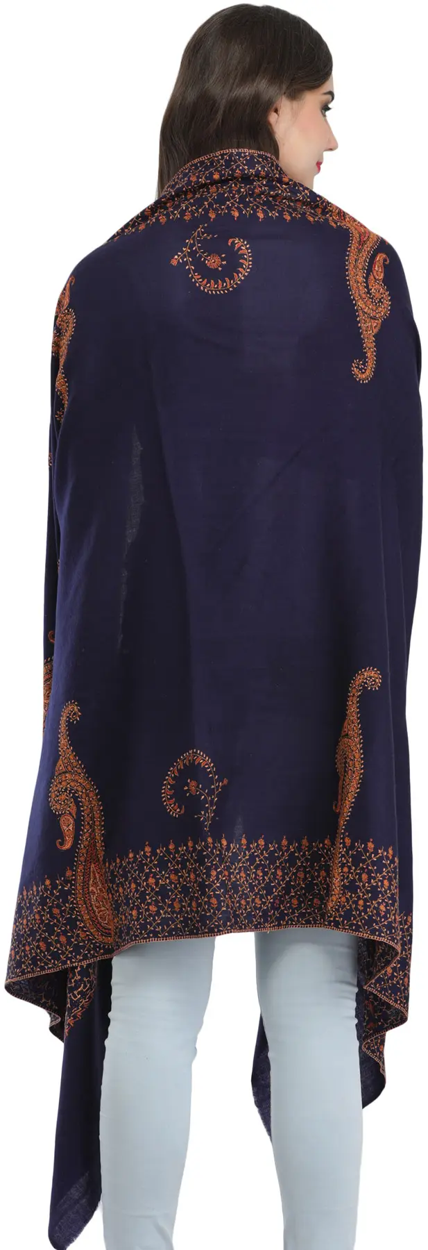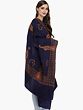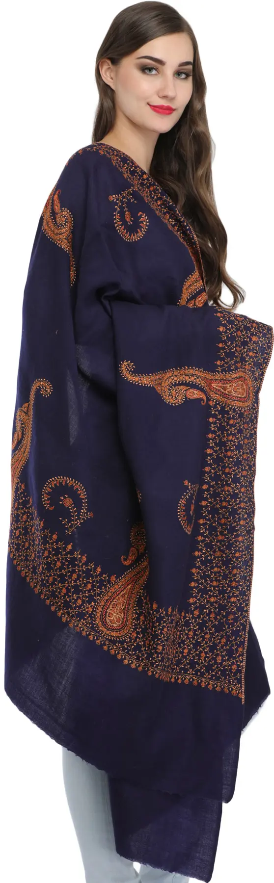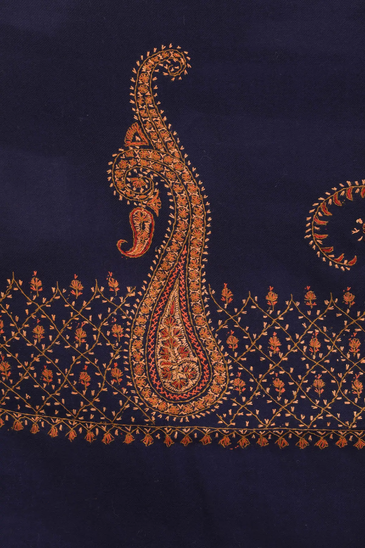 Medieval-Blue Diamond Weave Tusha Stole from Kashmir with Hashidar Hand Embroidery on Border