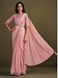 Bask in the ethereal charm of the Peach Georgette Crepe Silk Saree. The enchanting hue of peach, like a soft sunrise, needs no grand embellishments. Minimal sequins embroidery on the delicate fabric allows the color to radiate its own brilliance. Every fold speaks of sophistication, embodying simplicity in style. Paired with a Tapeta Silk Blouse, this saree is a masterpiece that captures the essence of understated elegance. Ideal for lovers of simplicity, it lets the fabric and color shine, creating a look that's not just a garment but a celebration of refined grace in every drape.