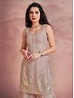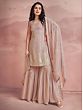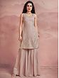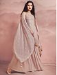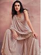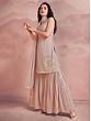 Experience the royalty of soft hues with this peach georgette designer sharara suit set. The gorgeous feel of georgette lends this ethnic wear a modern comfort, made luxurious with the sequin and embroidery work that covers the whole ensemble.