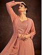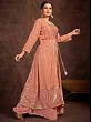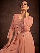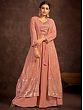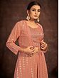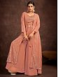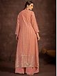 Peach Georgette Desinger Palazzo Suit With Floral Motif Sequins-Handwork Embroidery Long Jacket