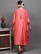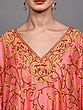 Pink-Icing Georgette Diaphanous Midi Kaftan with Aari Embroidered Flowers on Neck
