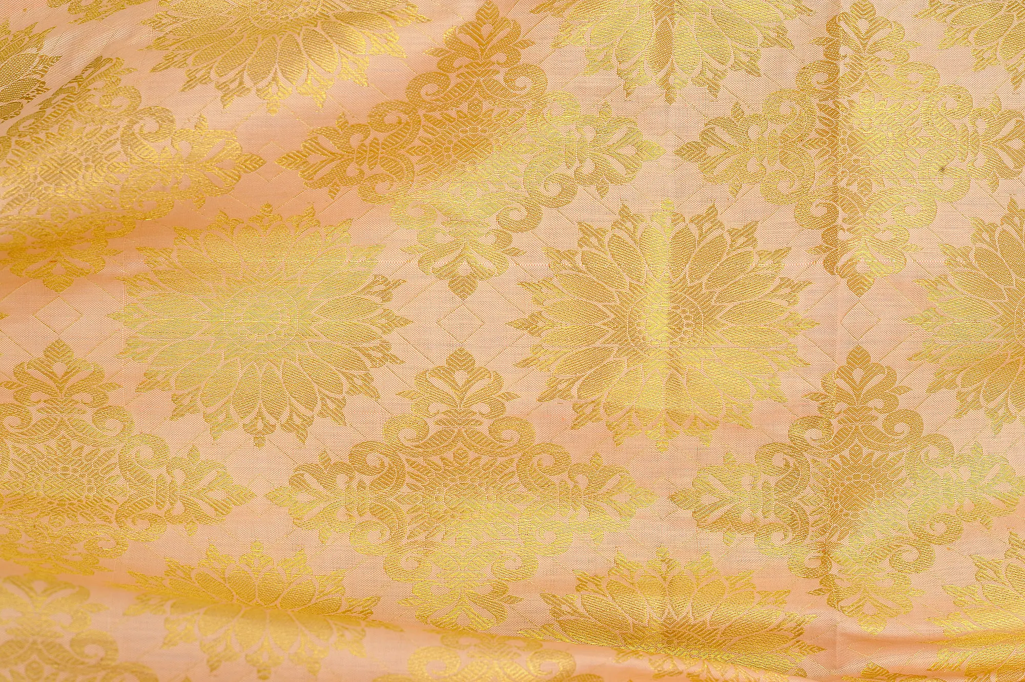 Peach-Puree Brocaded Shawl from Tamil Nadu with Zari Woven Motifs