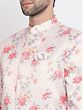 This Peach Silk Blend All-Over Digital Floral Print Jodhpuri Coat is a work of art regarding refinement and floral charm. The jacket is designed to transfer all of the pleasant energy into the place into which the user walks. This magnificent coat is made of sumptuous silk mix fabric and features a captivating digital flower motif that covers you in luxury. The peach color adds to its classic appeal, and the fitted cut provides a polished silhouette. The high collar, also known as the Galabandh, has been a symbol of sophisticated fashion post-independence. The Jodhpuri coat is ideal for formal occasions or cultural festivities since it combines history and modernity.