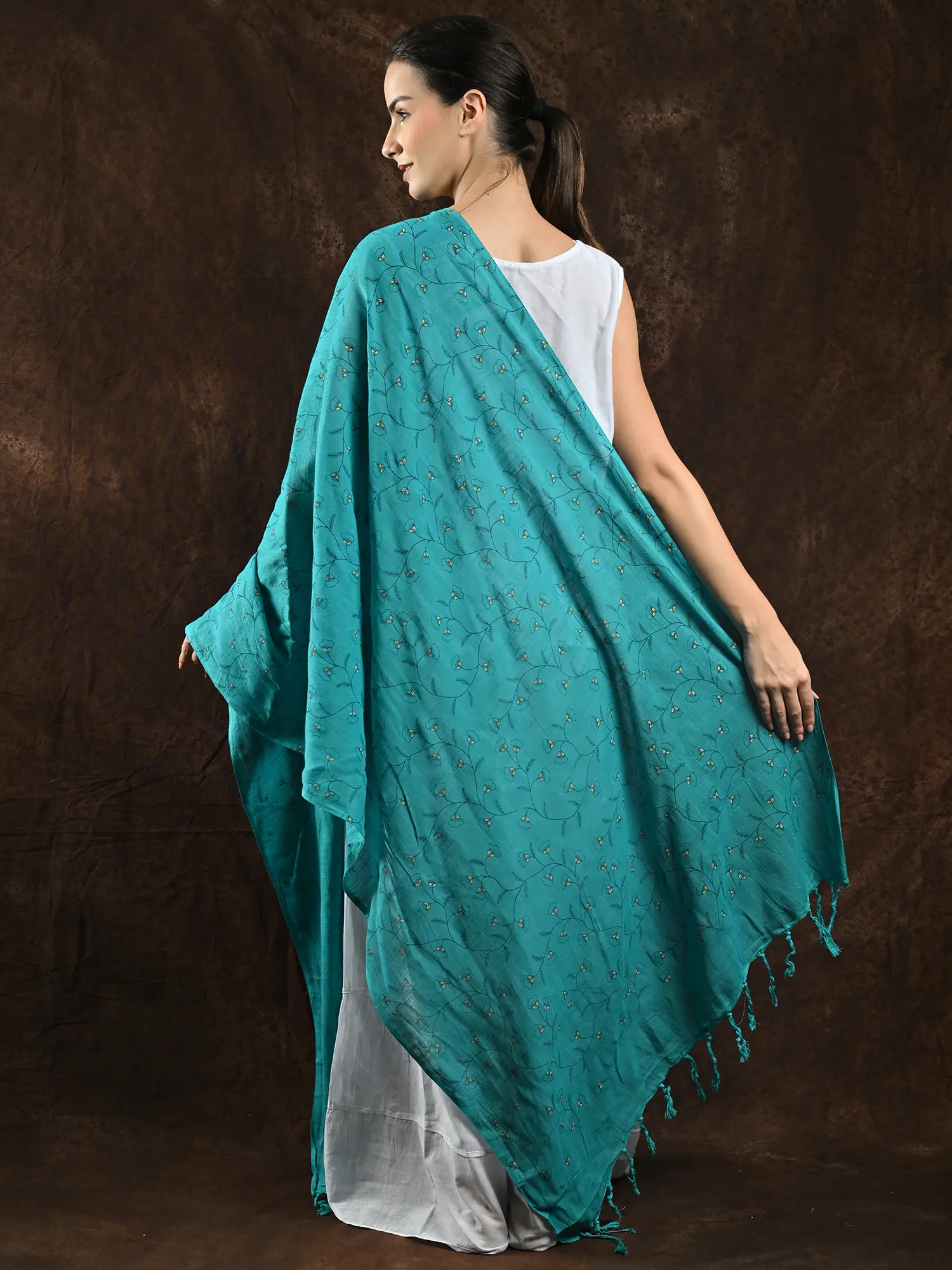 Stole from Kashmir with Aari-Hand-Embroidered Giant Paisleys