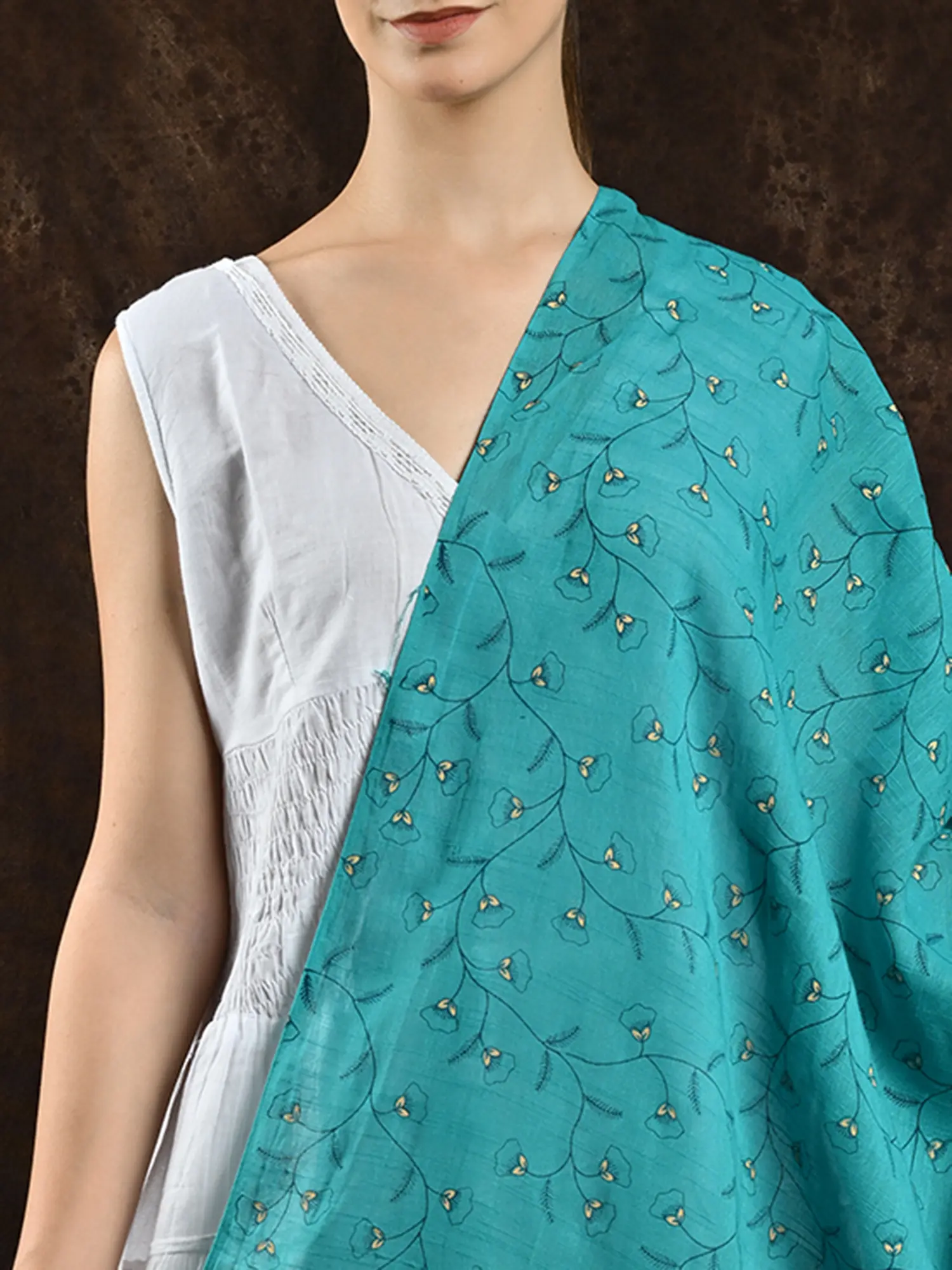 Imperial-Blue Khadi Cotton Kalamkari Dupatta with Kathak Hand Mudras