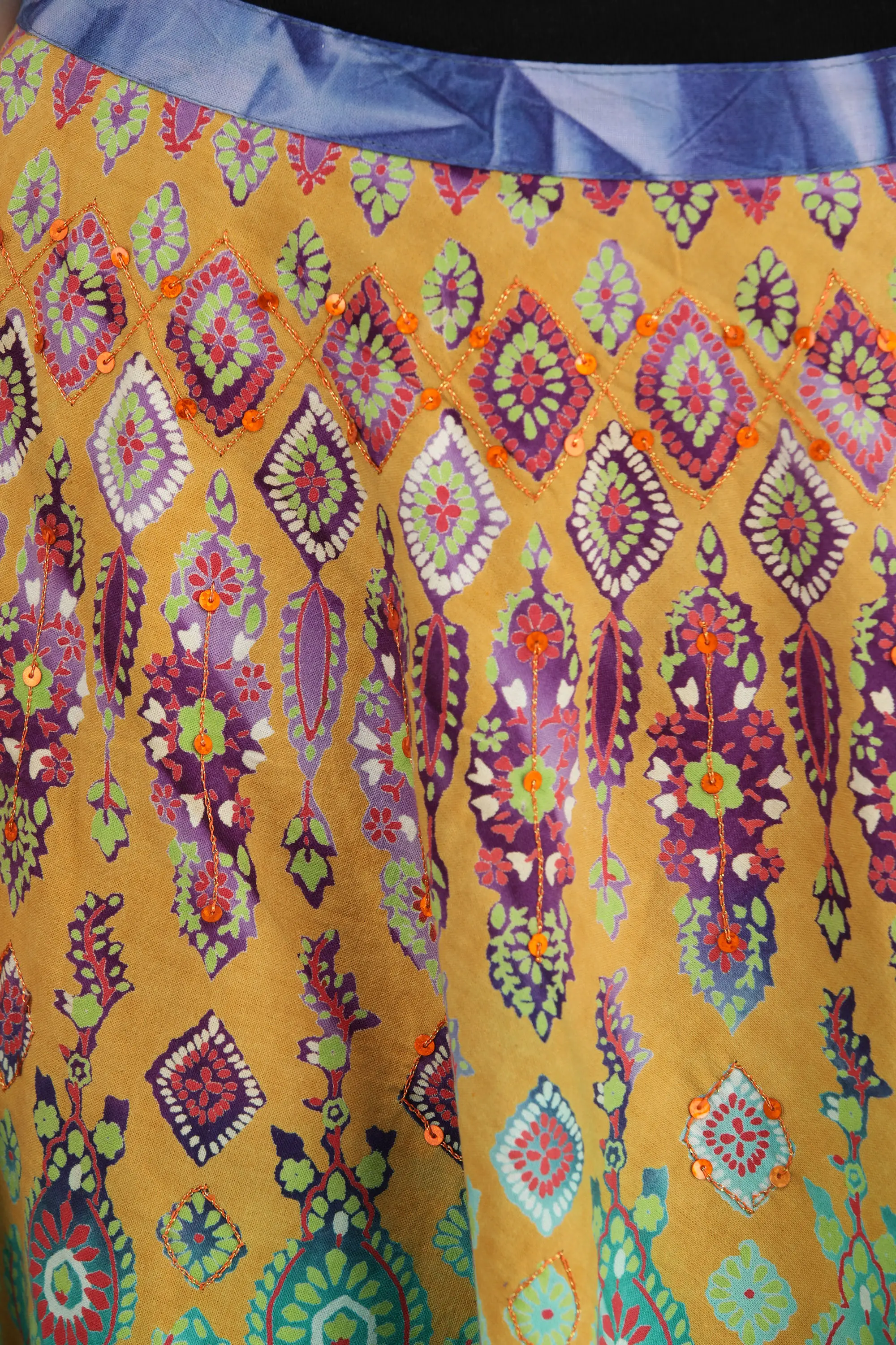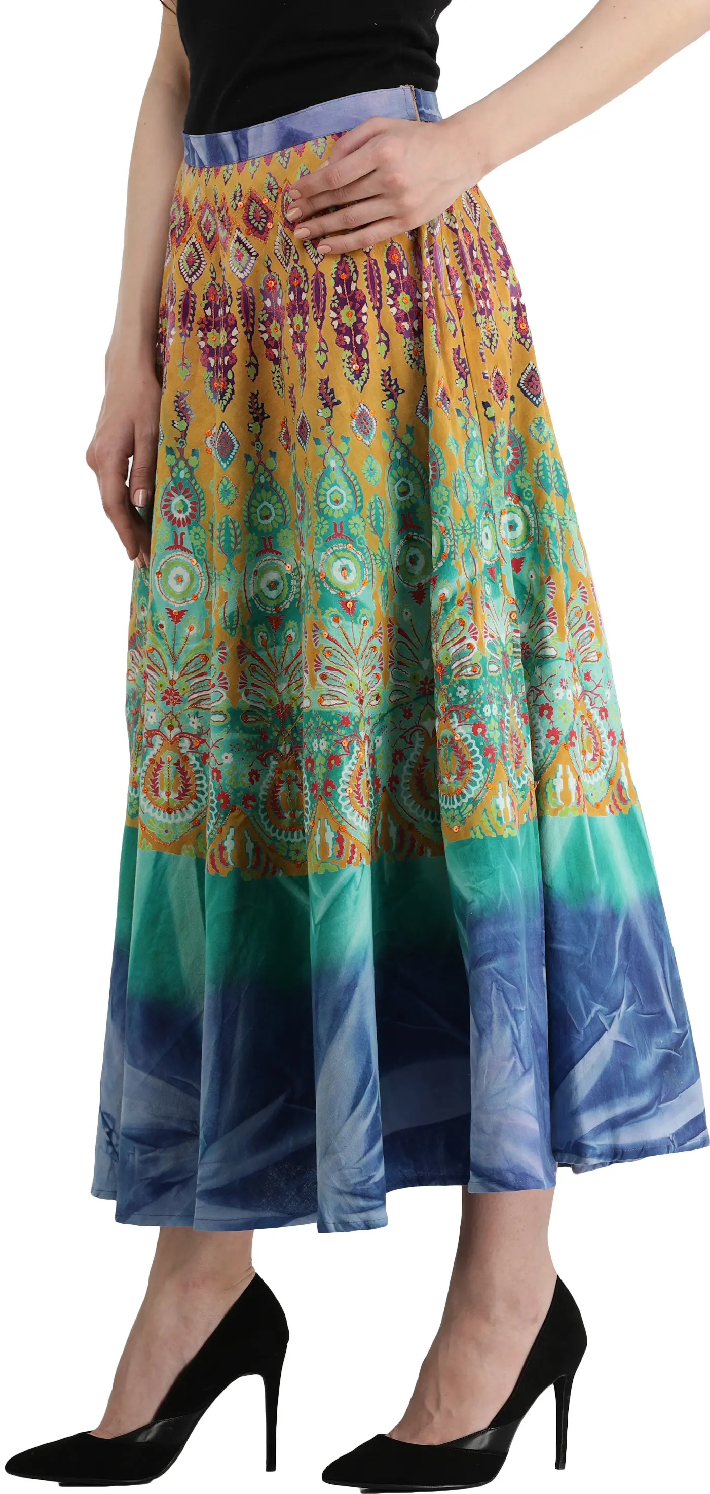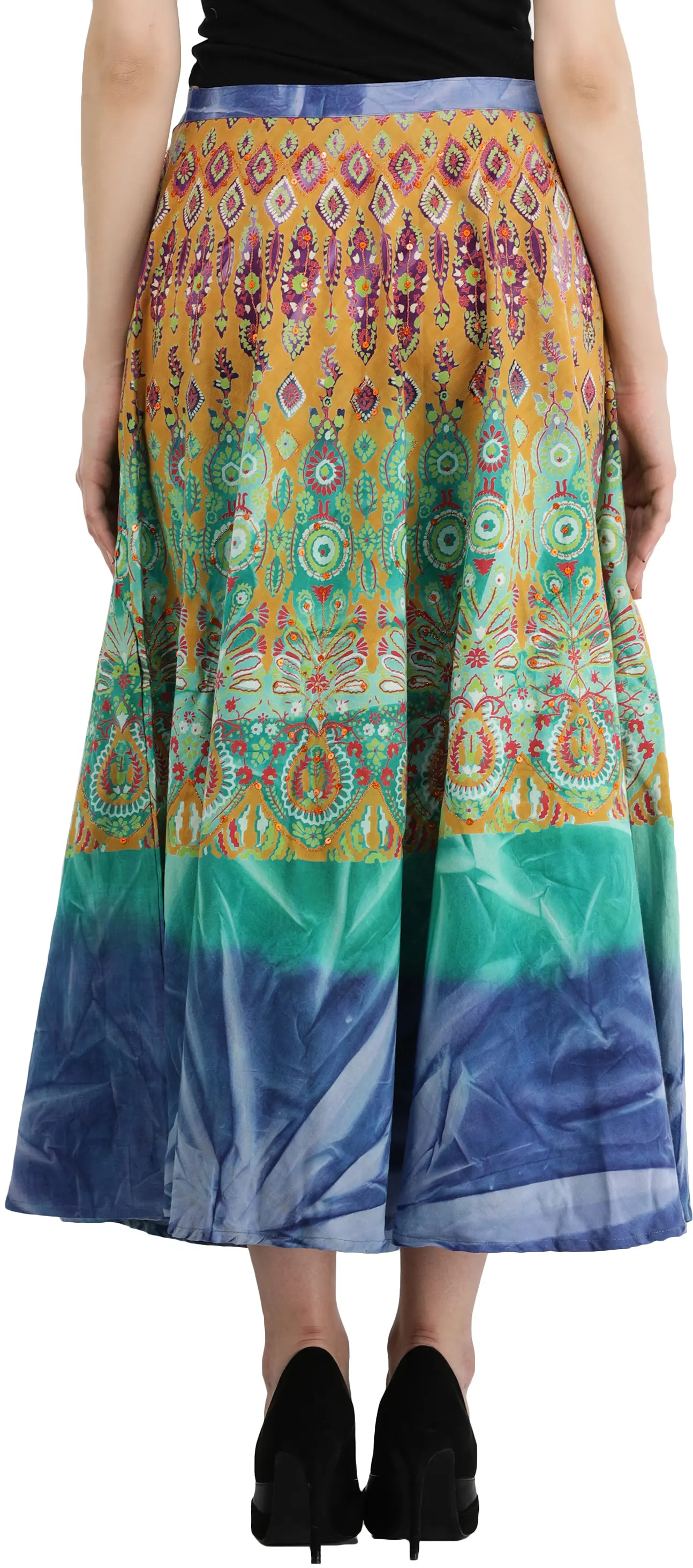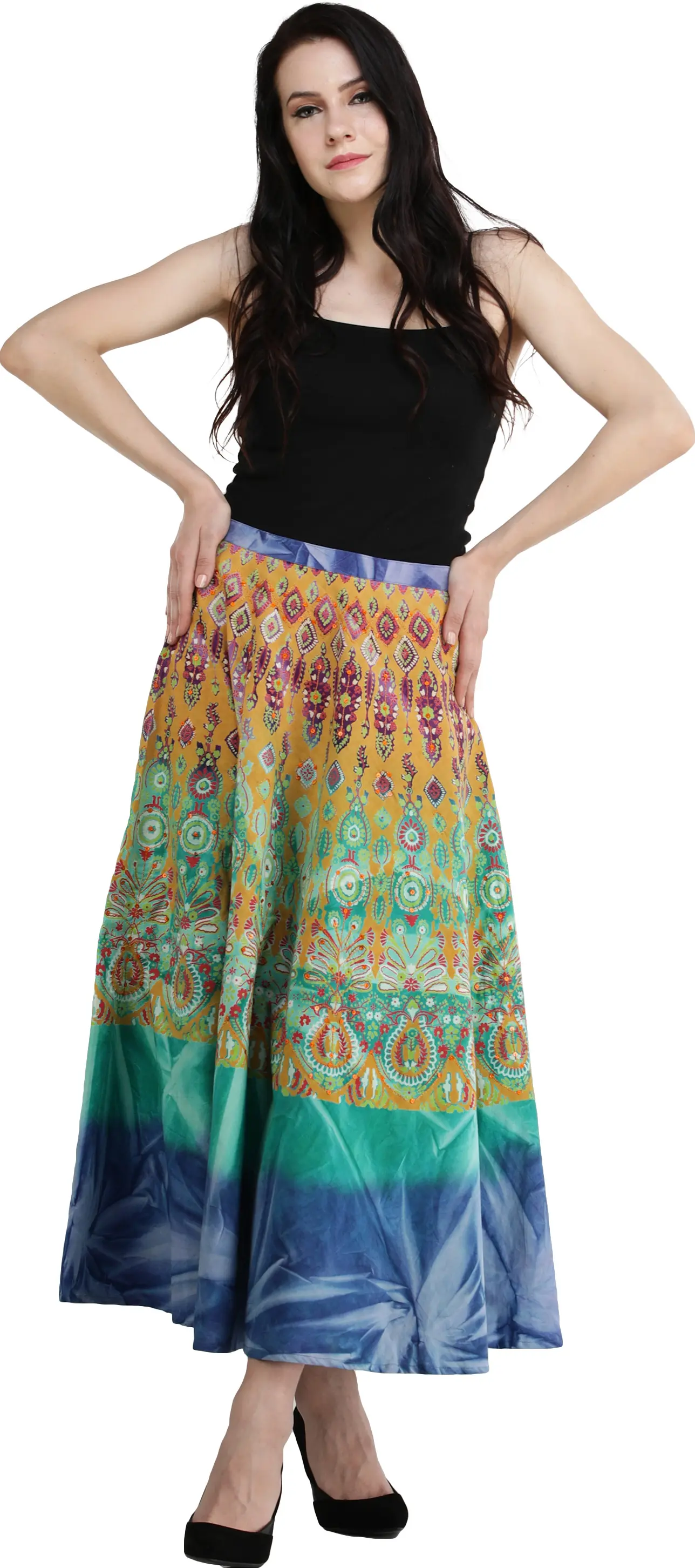 Wrap-On Long Skirt from Pilkhuwa with Printed Paisleys and Elephants