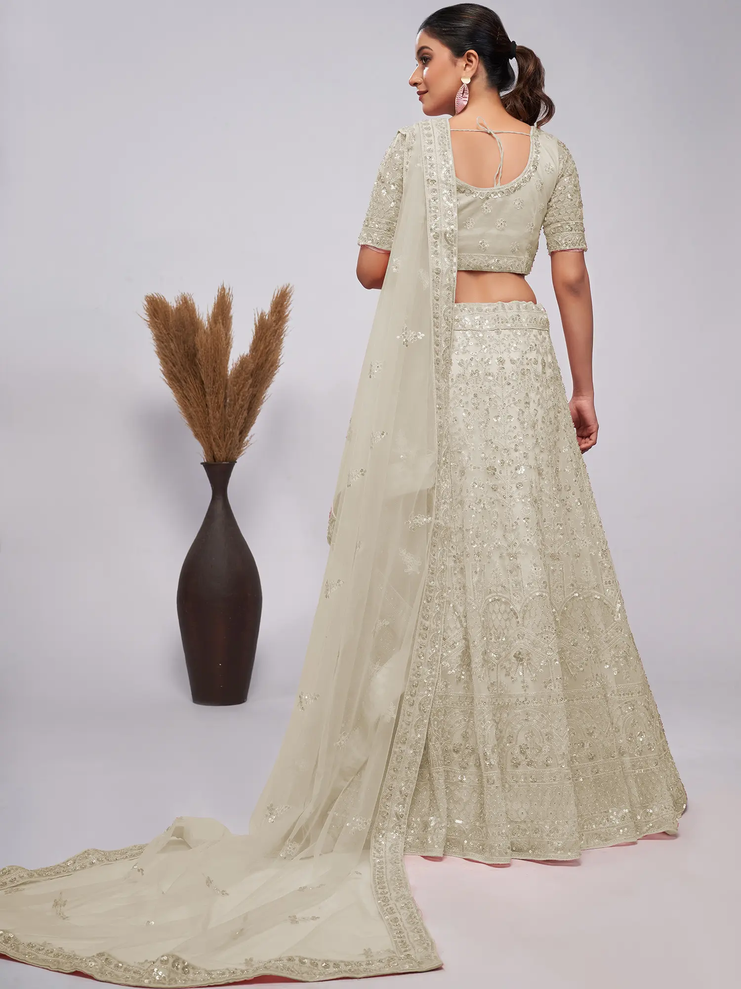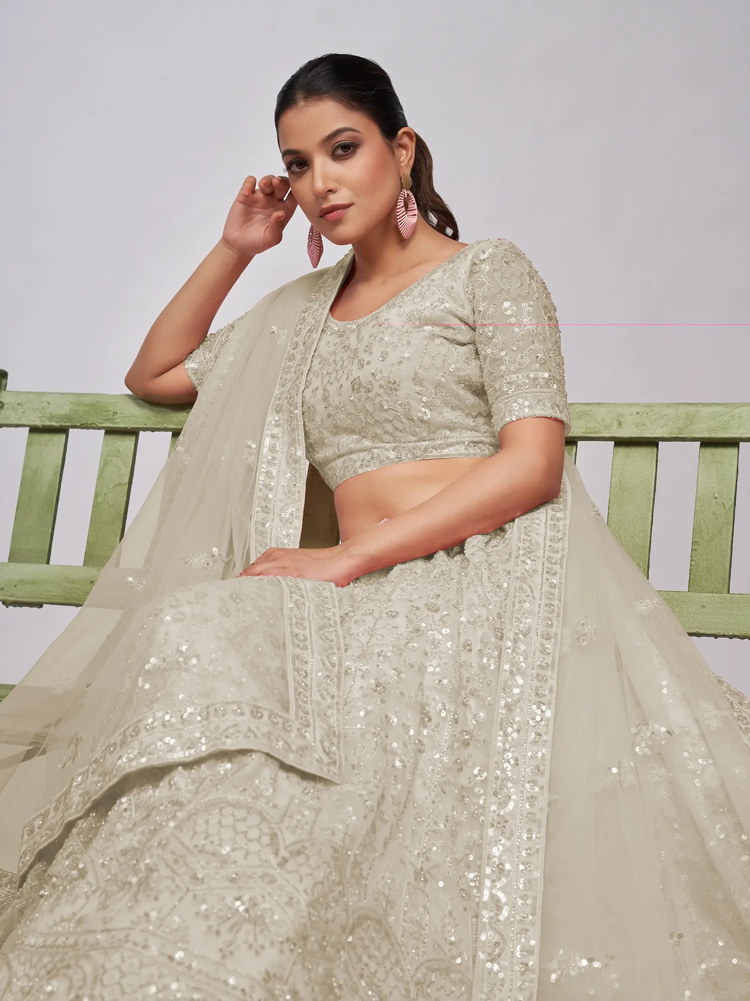 Stunning Floral Embroidery And Sequins Work Net Lehenga Choli With Matching Dupatta
