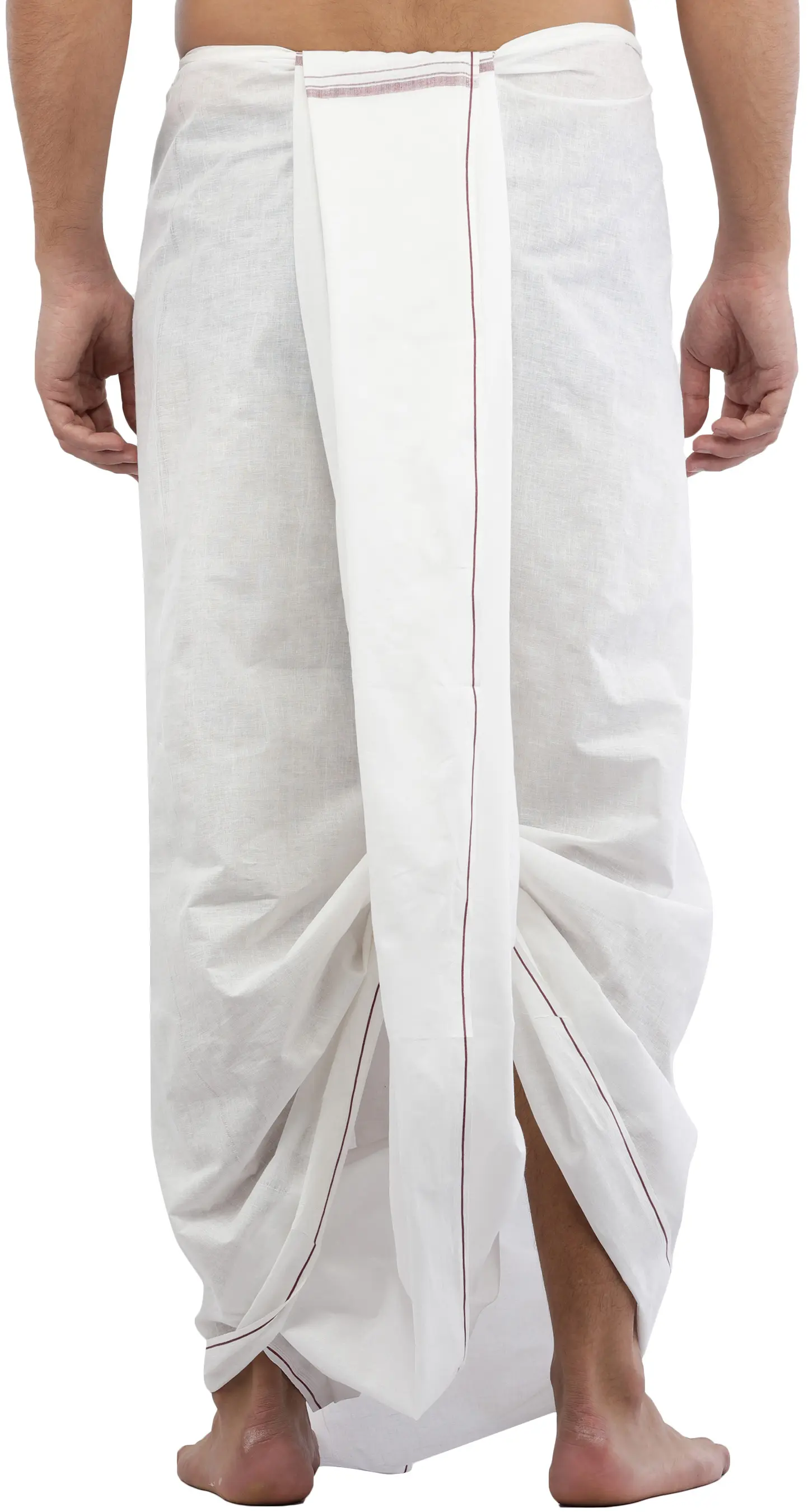 The Gaudiya Vaishnavas or the devotees of the worldwide-known Hare Krishna Movement have positively adopted the Vedic culture of wearing Dhoti as their everyday attire. The Brahmacharis wear saffron colored dhoti along with saffron Kurta while the Grihastha men wear white colored dhoti along with white Kurta. Some unmarried boys pair their dhoti with a simple T-shirt or collared shirt making it look more like a fashionable garment. The youth of this movement inspires others to reconnect with the rich tradition and culture of Bharat due to which wearing a dhoti has gained a lot of popularity.