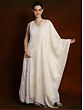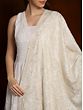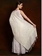 A vision in white, this monochromatic fine woolen shawl carries the elegance and delicate appeal of a white rose in this spread. The entire length of the shawl is covered in intricate traditional embroidery, done with a white thread to create a richness and understated allure. Fine tassels give finishing touches to the shawl, creating a piece that will forever be enchantingly stylish.
