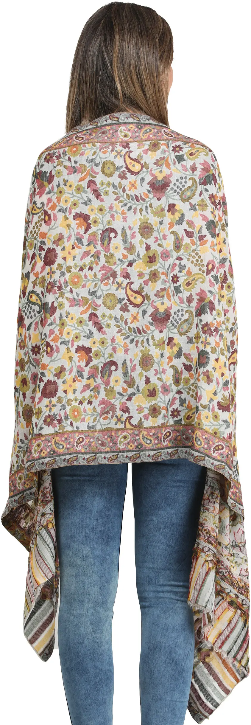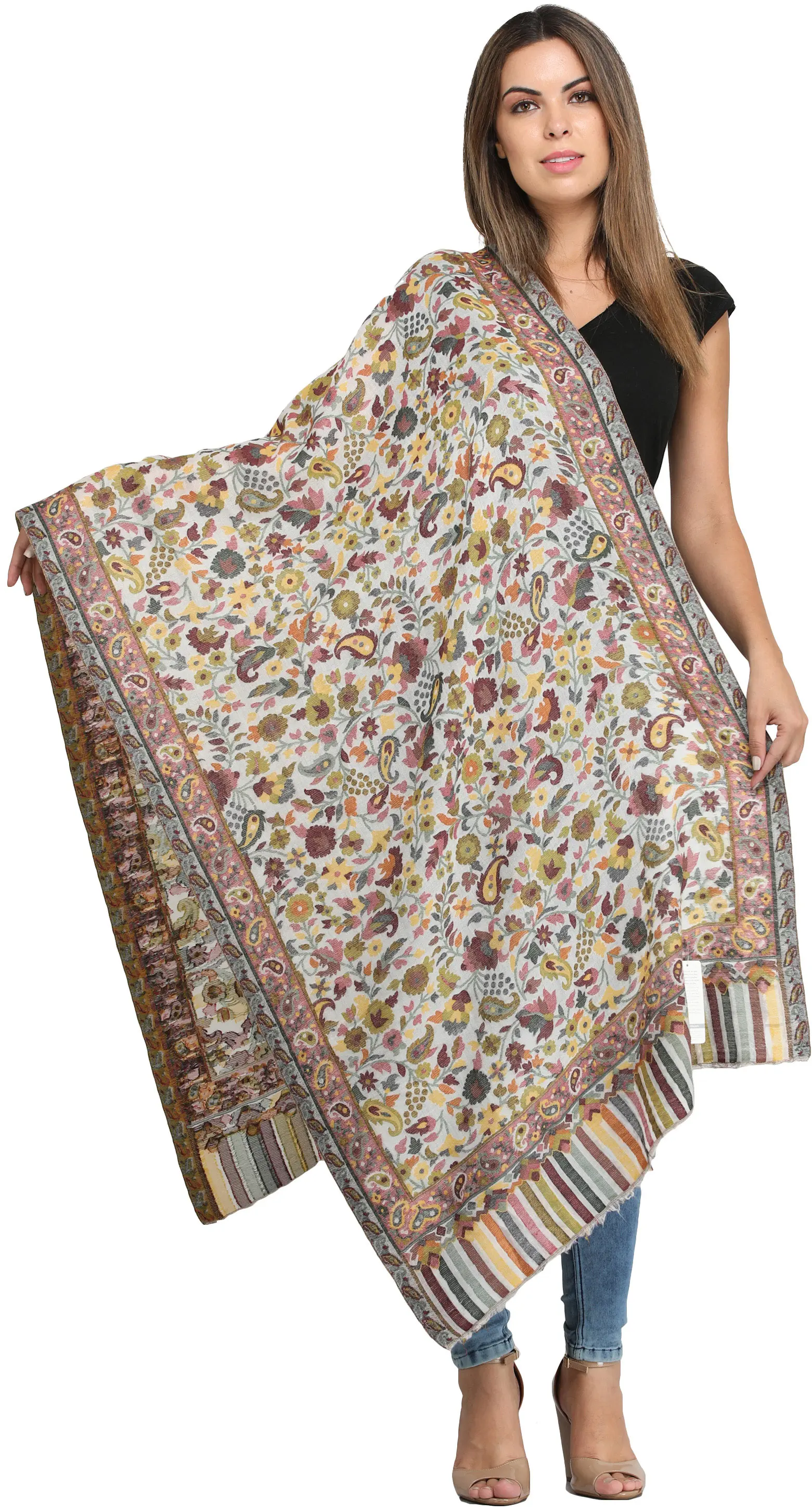 Diamond Weave Stole with Multicolor Kani Printed Flowers from Amritsar