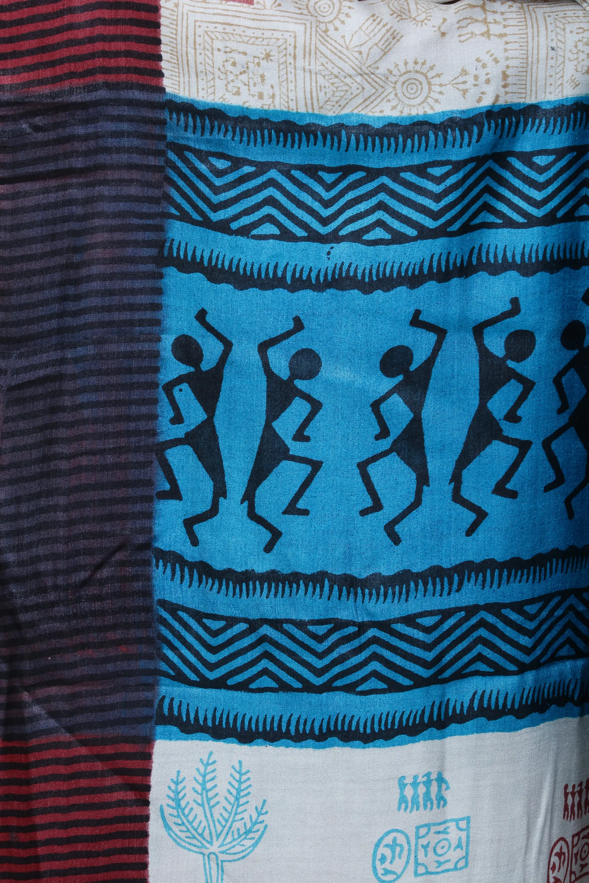 Art Silk Dupatta with Printed Warli Folk Art Motifs