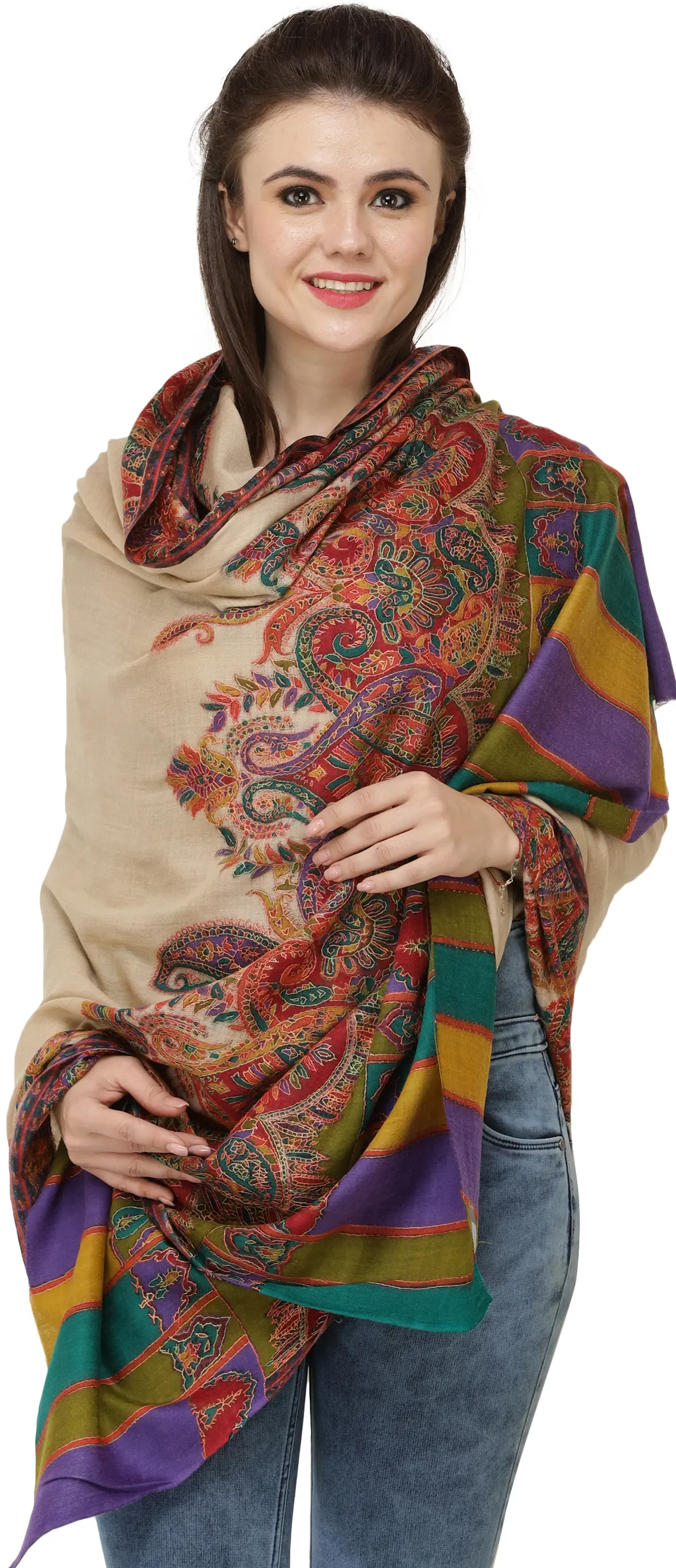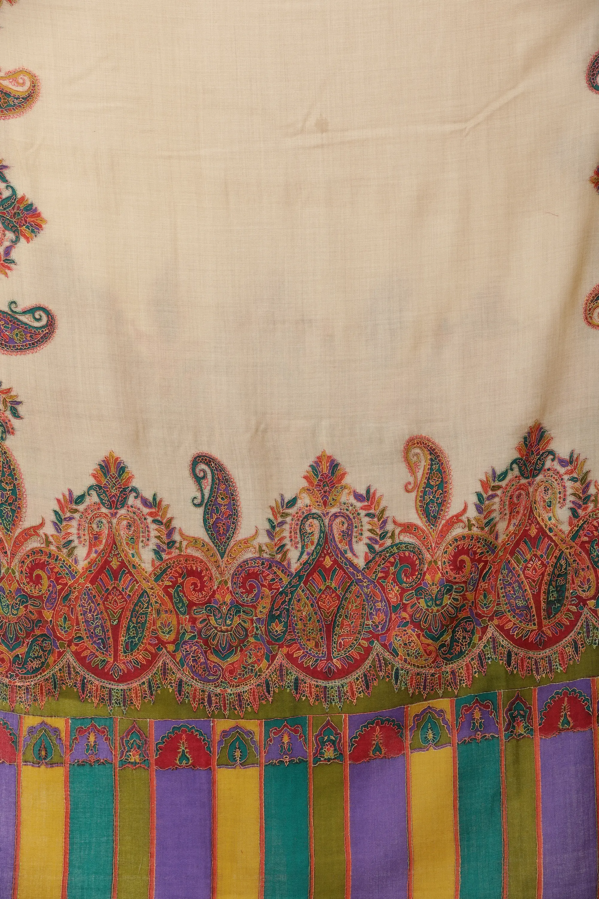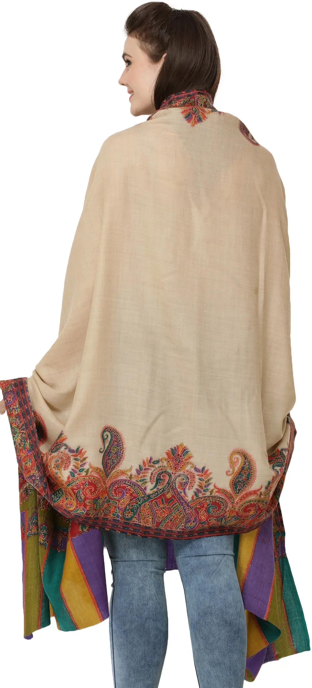 Embroidered Wool Shawl Featuring Paisley Motif and Corner Accents
