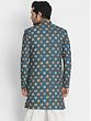 Silk Blend Calf Length Kurta And Paisley Motif Embroidered Navy Blue Dhoti